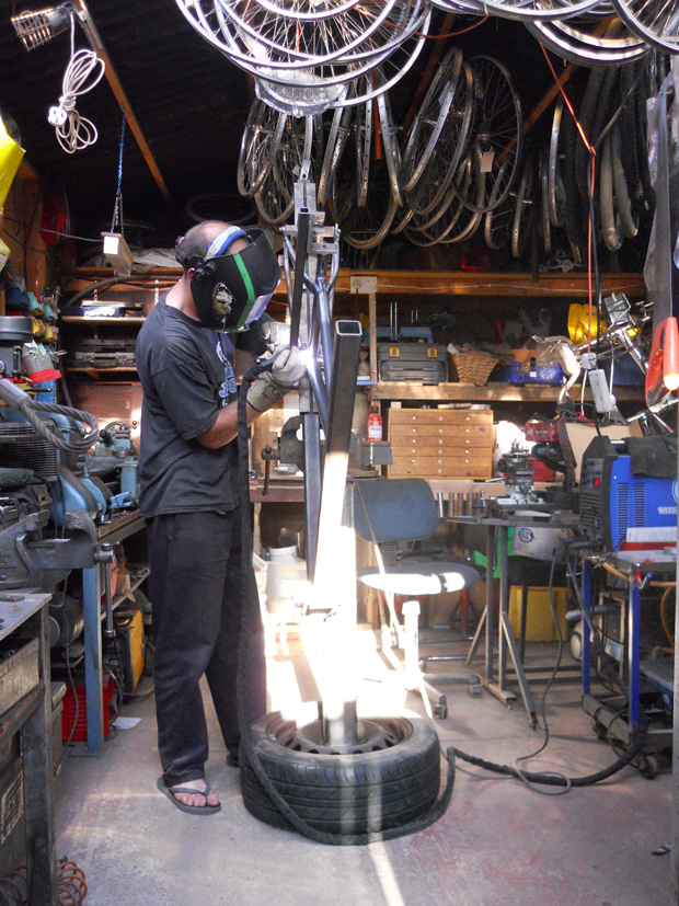 It’s taken a long time from when we first decided to make a frame to when we could ride it. I’ve hardly ridden or seen anyone apart from work people and my girlfriend for over a year. Trying to figure out how to make the tools I needed has been the most fun. I had an Idea of what I wanted them to do and then started building, figured each bit out as I went and the feeling you get when it does its job is awesome.