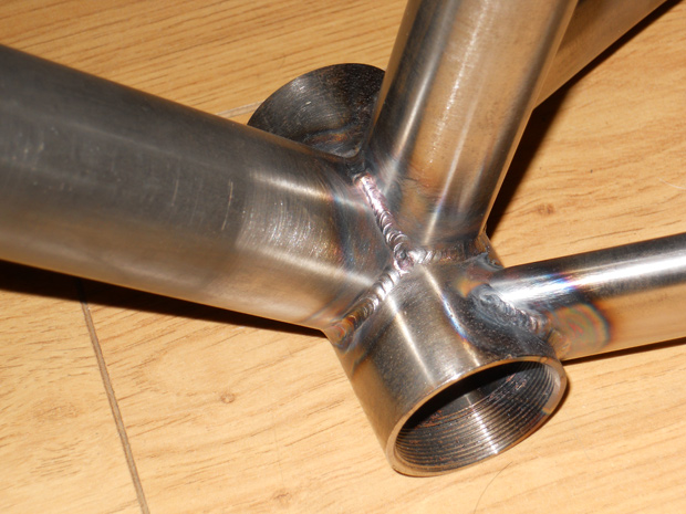 It took ages to find 4130 tubes in the right diameter and at the right cost. The tubes (6m) for the top and down tubes and the sheet metal ended up coming from Holland. We got the chainstays, headset cups (integrated 45), seatube (seatpost size) and bottom bracket from Ceeway (Framebuilding One Stop Shop). The sheet metal bits were laser cut into gussets and dropouts.