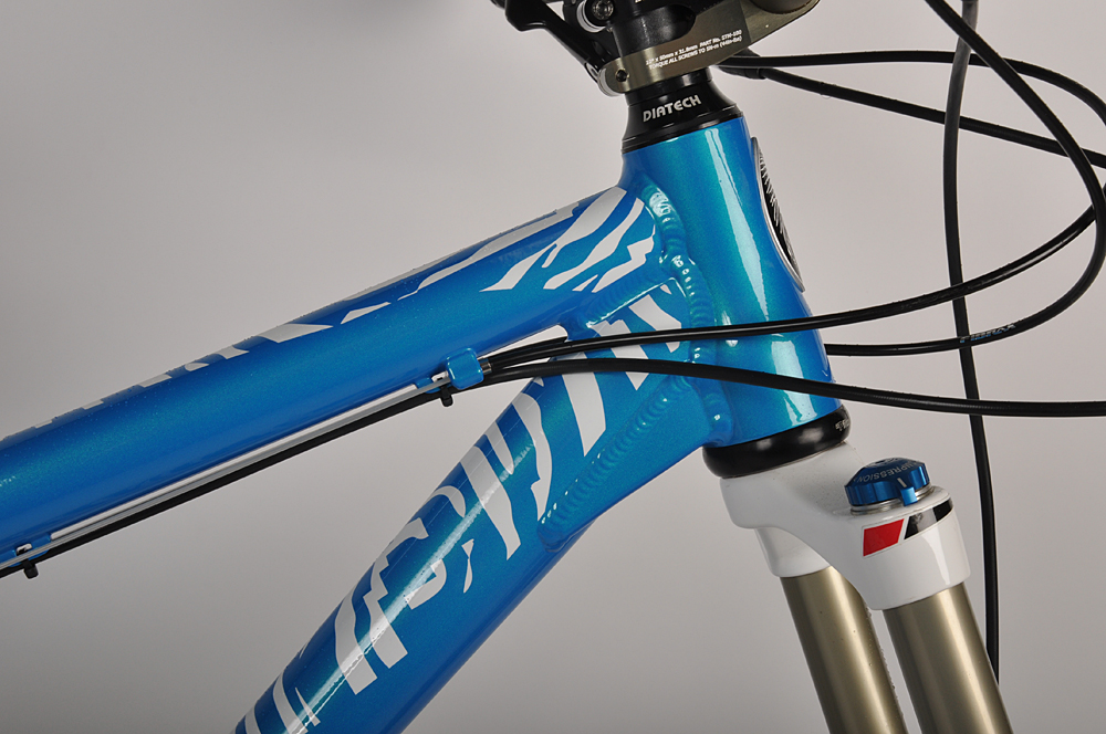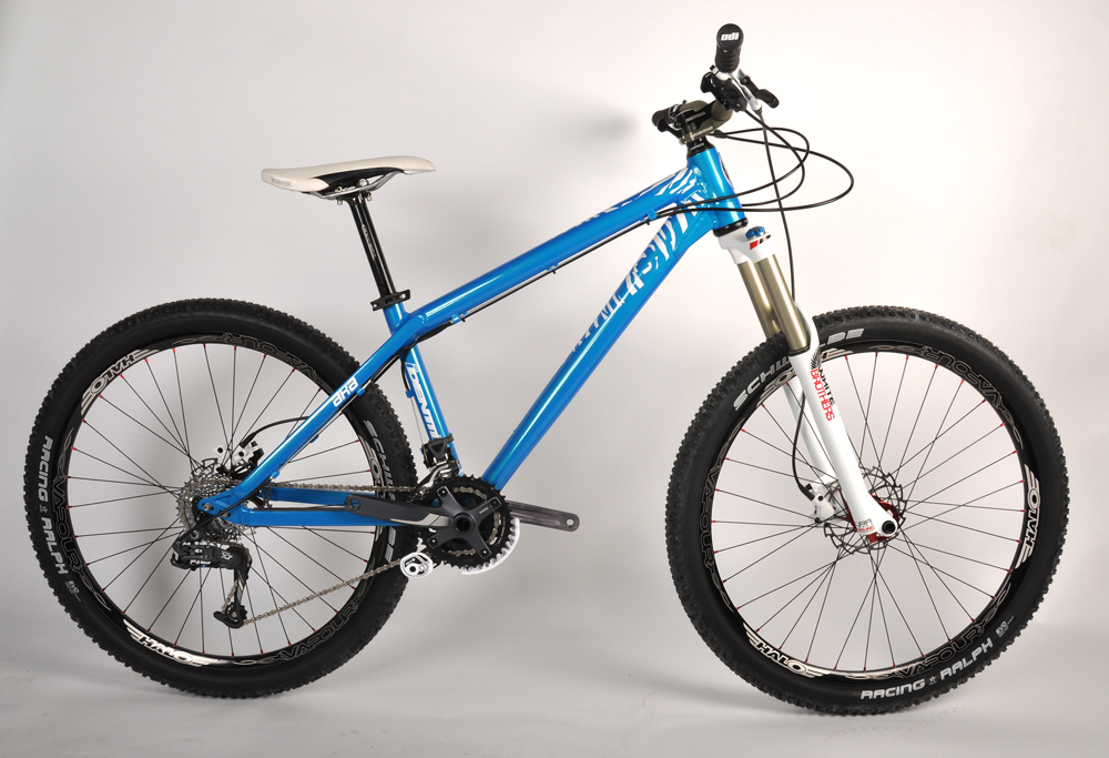 Will a well balanced 26″ work well with 650b wheels bolted on? I didn’t get to ride this one so I don’t know, but the option is there and it looks well proportioned. What else? Well it comes in Metallic Orange, Cyan or Satin Black.
