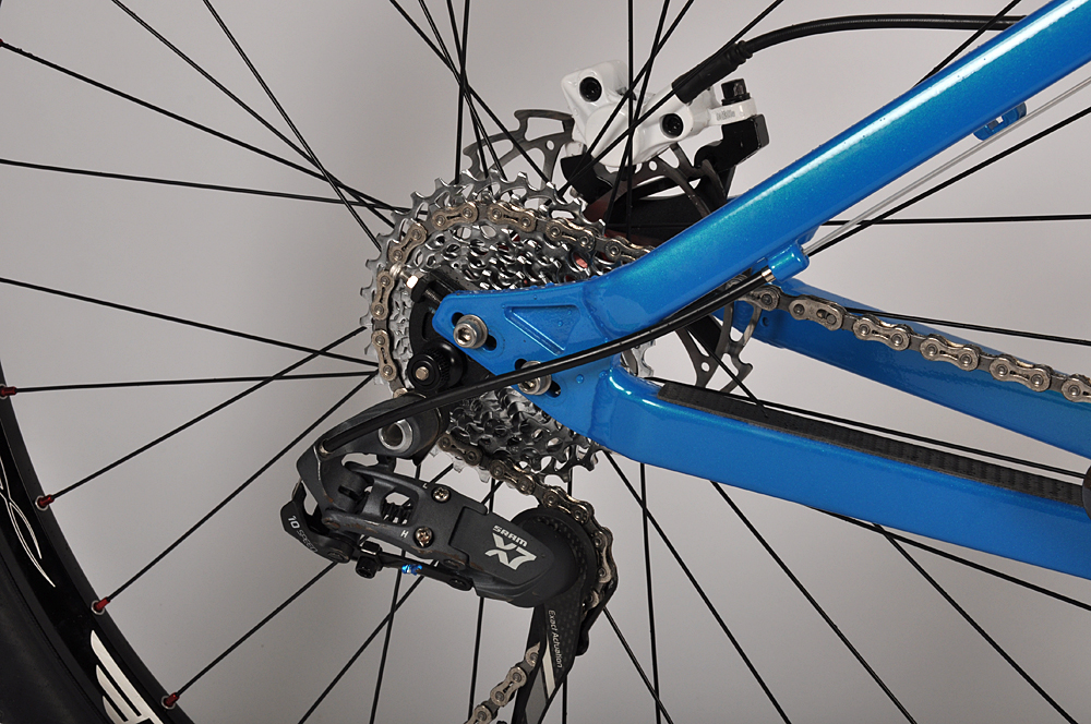 The AKA uses the same back end as Identiti’s 4x aluminium hardtails, you know, the ones with the “Twin Box” chainstays, which mean that the back end is firm as with little flex.