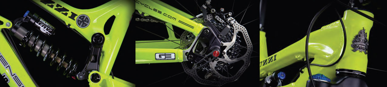 The Uzzi has been our big travel ‘do it all’ bike for over 10 Years. And over the years it has evolved into a very well refined long travel ‘all mountain’ bike. Just like the name suggests, the Uzzi is the weapon of choice for you to annihilate everything in your path. Rocks, drops, corners, rubble, stubble, roots, toaster sized boulders, what ever gets in your way. You will be victorious. And just like all VPP bikes, it pedals like a dream. To call it the ‘Swiss Army knife’ is an understatement. Highlights include the 65-66 steering angle suited for faster cornering and greater control, refined suspension travel characteristics to suit all riders, and a re-engineered rear end to increase lateral stiffness without compromising the compliant feel that gives the superior ride quality Intense is so well known for.