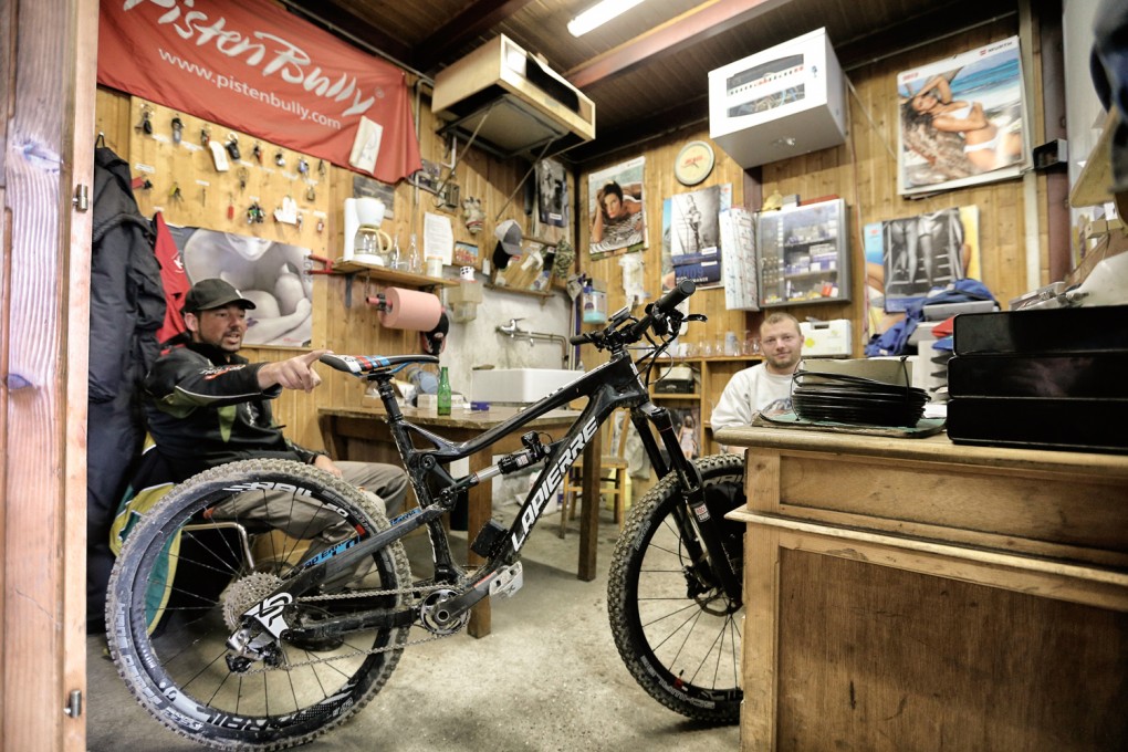 Why not? At a guess because there needs to be some more foreplay, that’s why not. Look how many times have we been through the detail here? Handlebars, stem, cranks, gears, grips, internal cable routing… there’s nothing in there that I cannot tell you that you probably don’t already know. OK, so Nico Vouilloz runs a chainguide on his bike rather than be fully confident in the Sram XX1 and he’ll occasionally drop the Ei shock (Lapierre’s electronic ‘terrain sensitive’ rear damper) for a standard shock on the odd full–on downhill day simply in the name of progression (it’s difficult to learn unless you enter the different margins that ‘against the clock’ riding delivers). And that in itself warrants a whole volume of discussion.