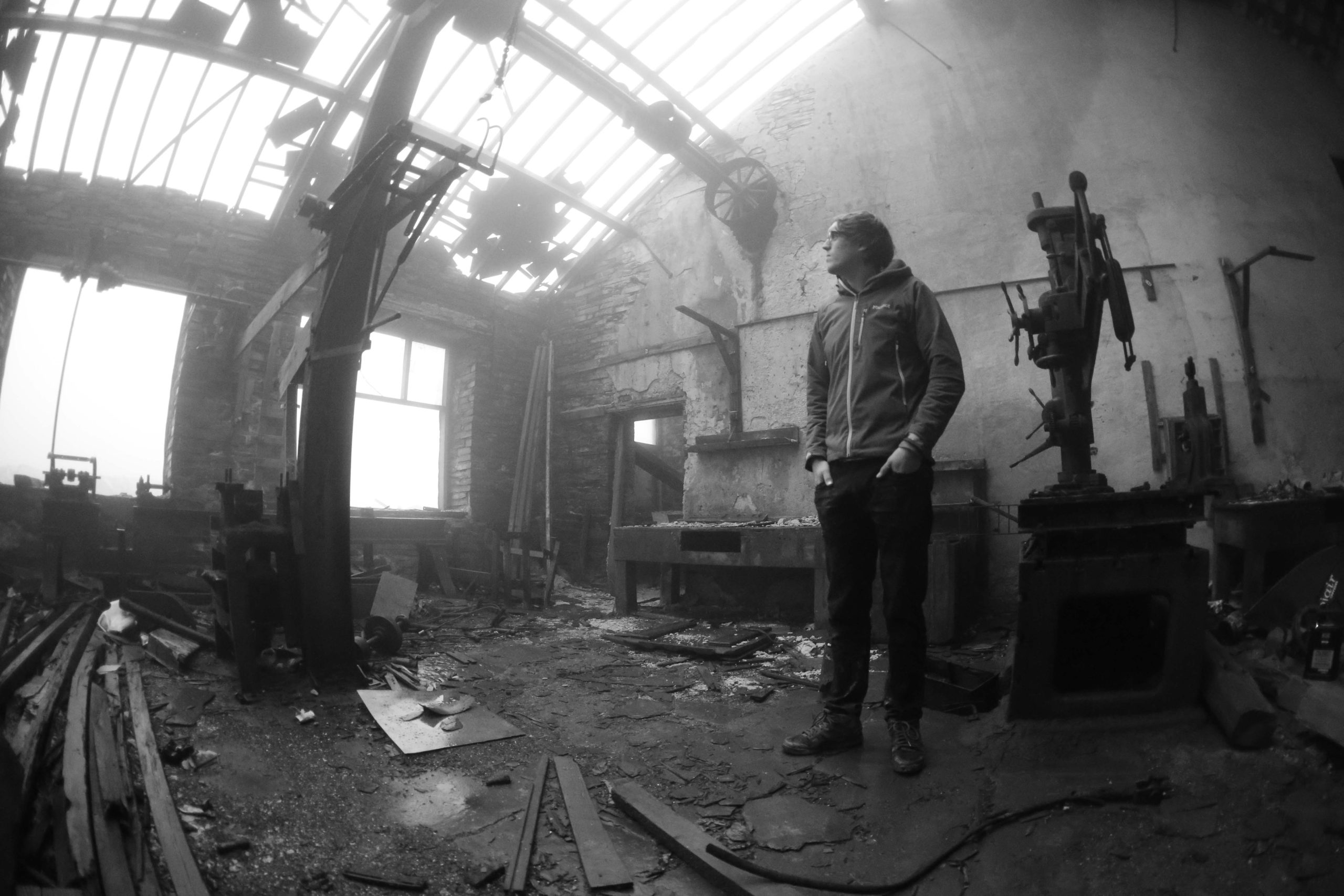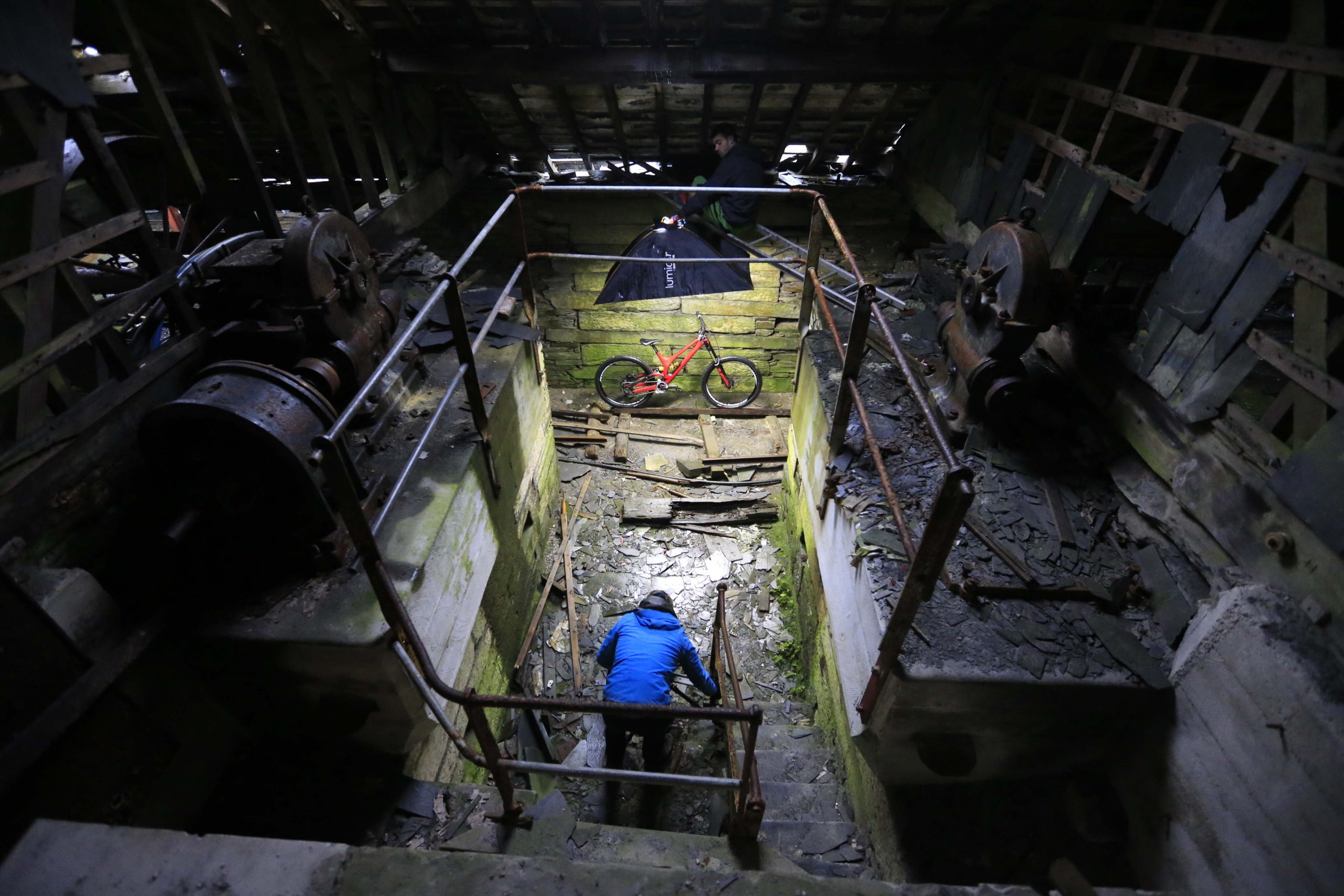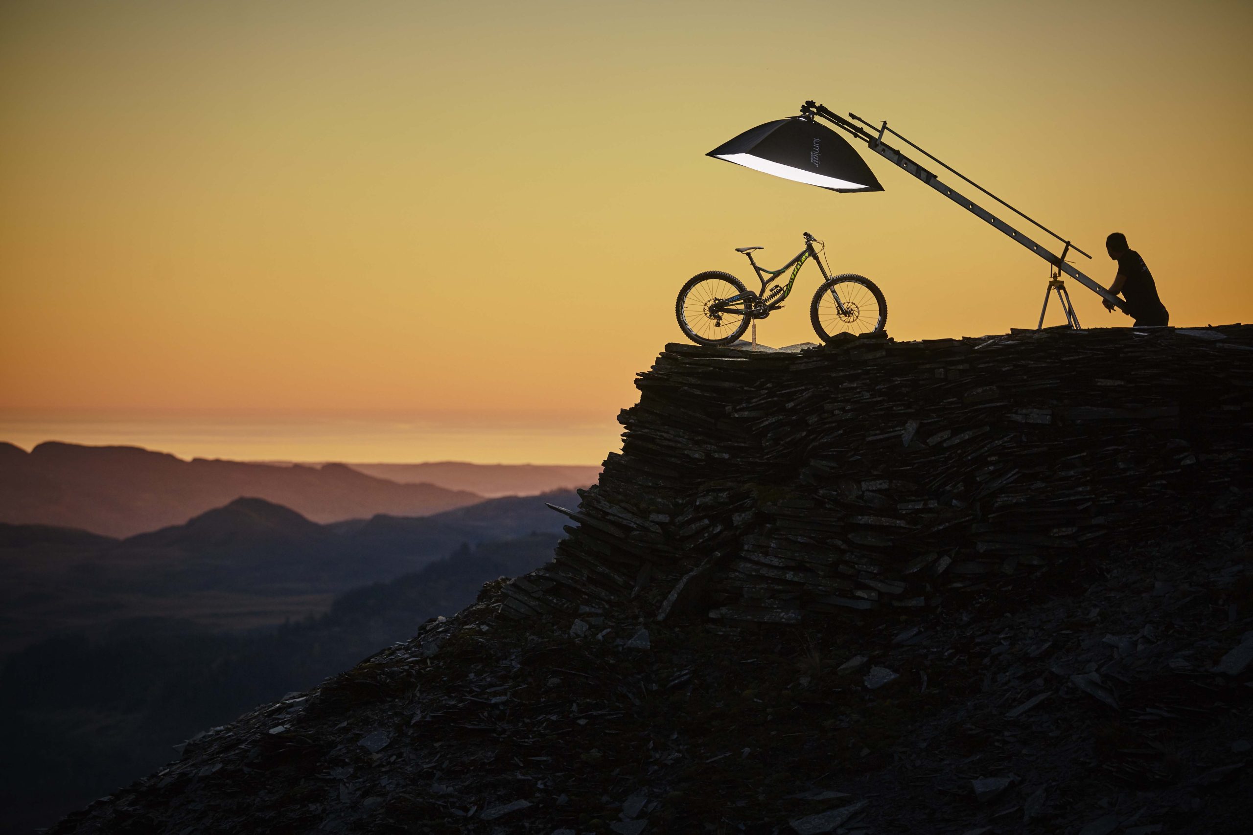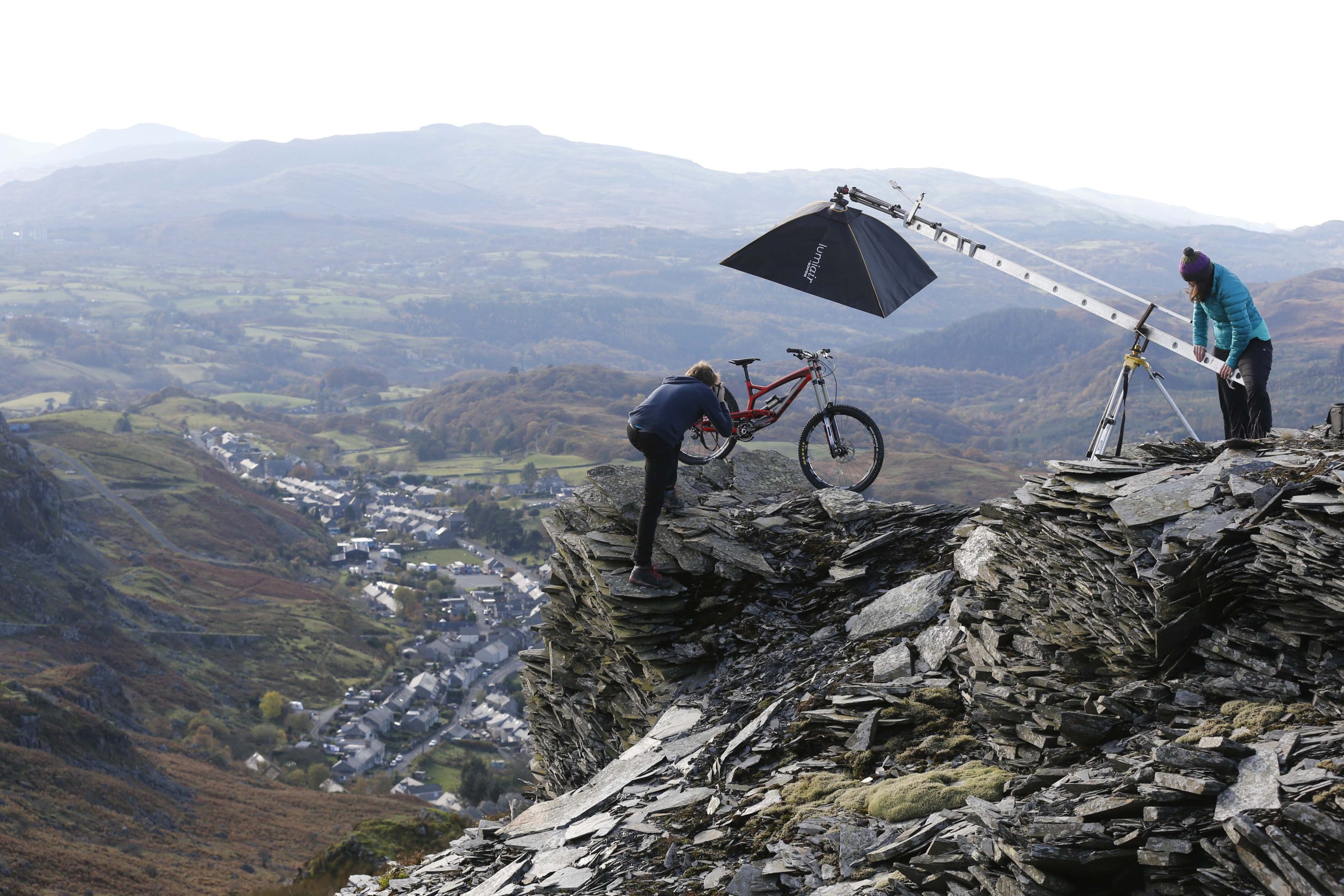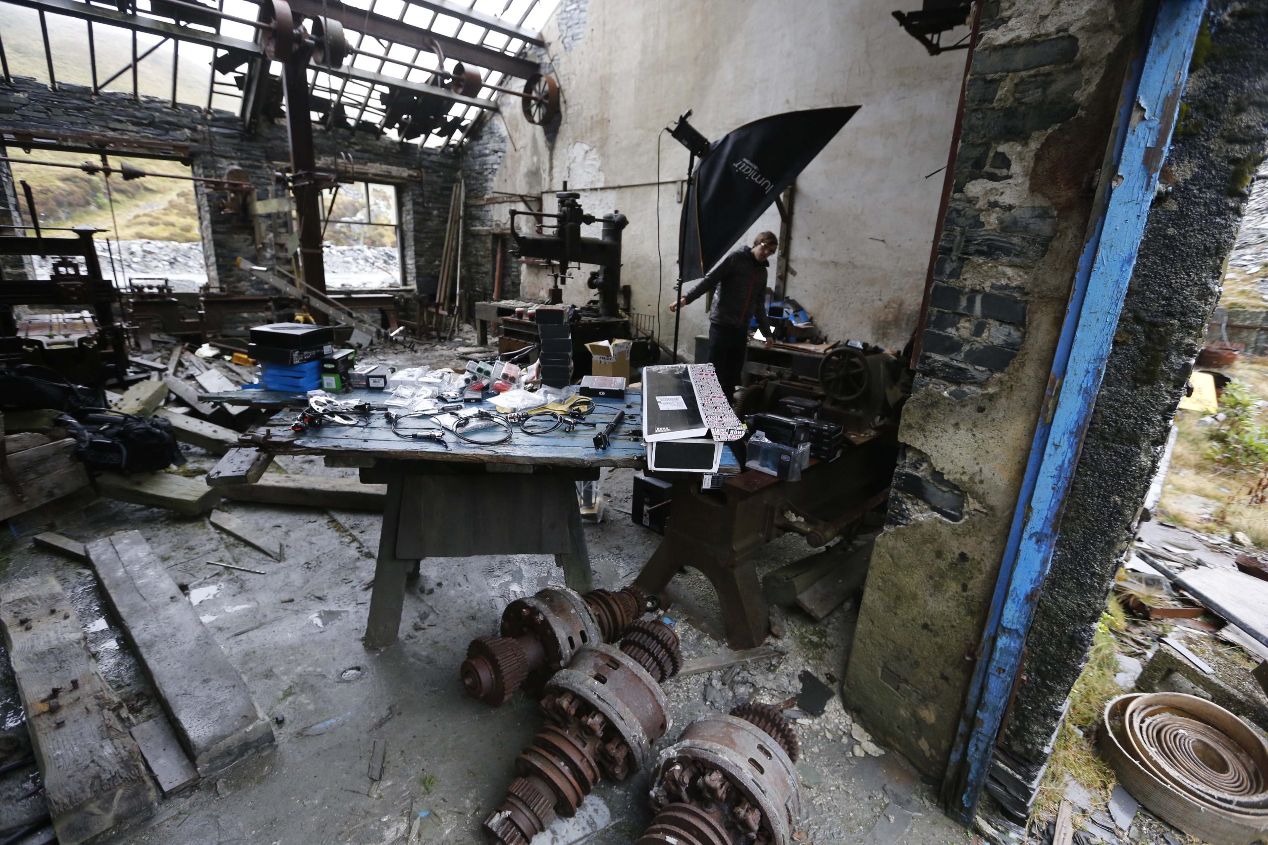 By coincidence Subaru were shooting a new car with the ‘Stig’ nearby. With over thirty people and seven vehicles they were part of a huge production team, and they kindly invited us to lunch at their mountainside canteen. Us being two blokes, a flash, tripod made of half a ladder and 79p car boot surveyors tripod. In a slate quarry established in 1760 by Methusalem Jones and eight men, we began shooting, backlit by a warm winter glow over Cnicht and the Moelwyn’s. Subaru were taking it expedition style whilst we were going the alpinism route.