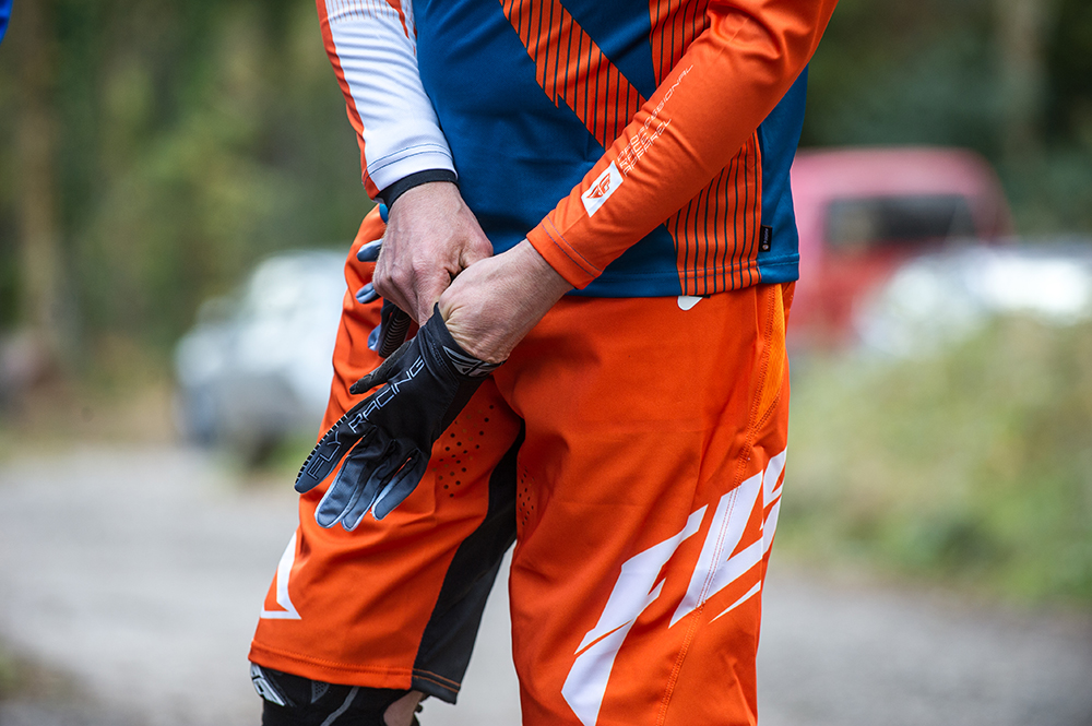 With years of experience producing MX kit, we can see an influence both in visuals but more importantly fabric choice when it comes to this bike range. Fly seem to have hit on fabrics that blend durability with low weight, keeping kit DH tough yet light enough for trail riding or enduro racing. The cut of the clothing has a ‘performance’ edge to it – not too loose and baggy but working well with pads and armour.