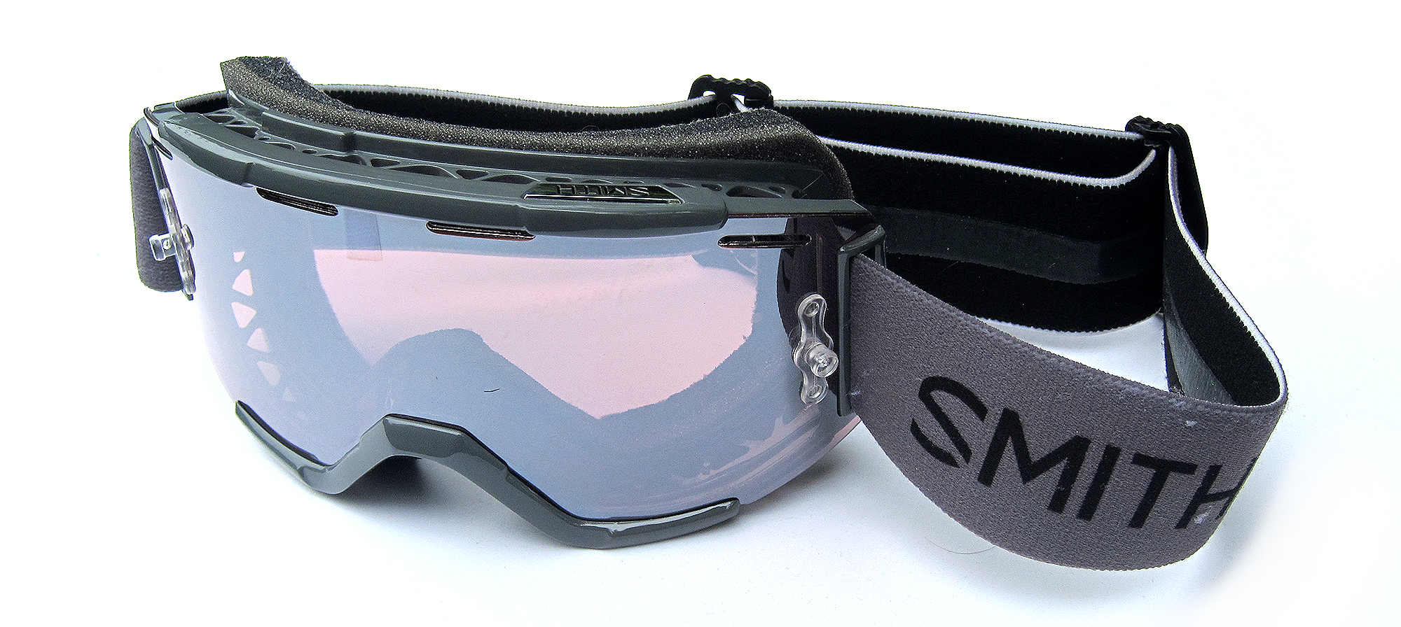 Smith have removed the foam from these vents and along with the four slots in the top of the lens increases airflow further. Sure, in very dusty conditions this may be an issue but it’s yet to prove a problem for us. A triple layer of foam is high quality and sits well against the face, sealing out the muck. A wide silicone backed strap with dual sliders stays adjusted well and keeps the goggles in place well.
