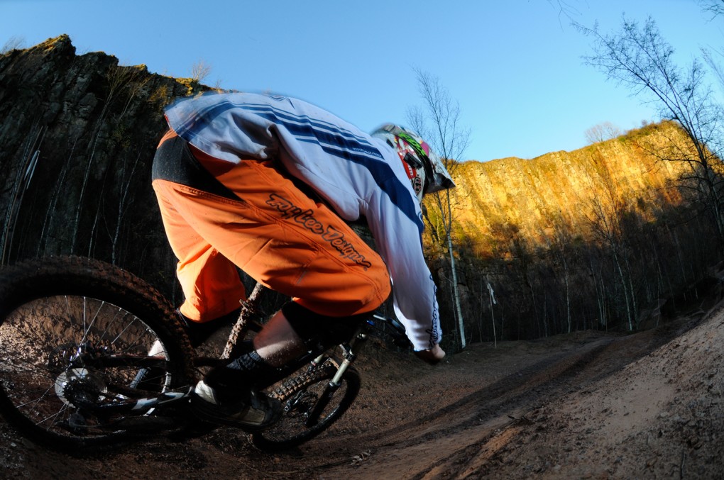 Specialized, what have you done? This thing flies! Having to eat my words is an unfortunate habit of mine (Ali Todd), but rarely have I ever had to change my mind this quickly. I had to make sure that the fork and shock hadn’t been surreptitiously changed between the office and the trail centre – the Specialized Status felt just as balanced and smooth as a lot of £5,000+ bikes we’ve ridden. This might change slightly in the hard conditions of summer where the compression might be slightly lacking, but it’s still fantastic at any price – never mind this one. It feels much more nimble than the 40lbs it weighs would suggest – as happy getting sideways in the air as it is dodging trees. The FSR linkage is predictable, and works well right the way through its travel. The rest of the kit does exactly what it’s designed to and little more…though the extras aren’t really on your mind when you’re fast approaching a tree.>>