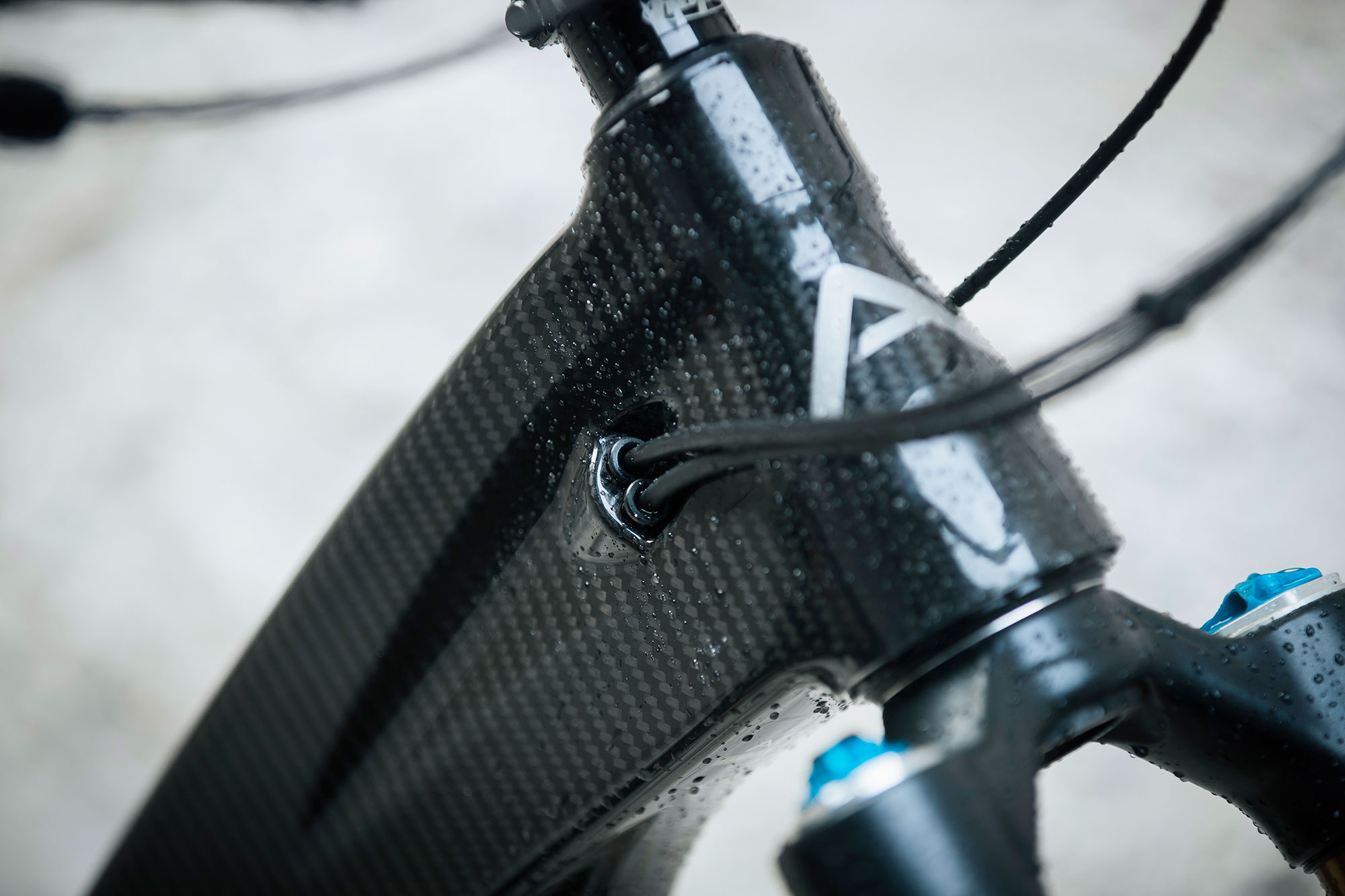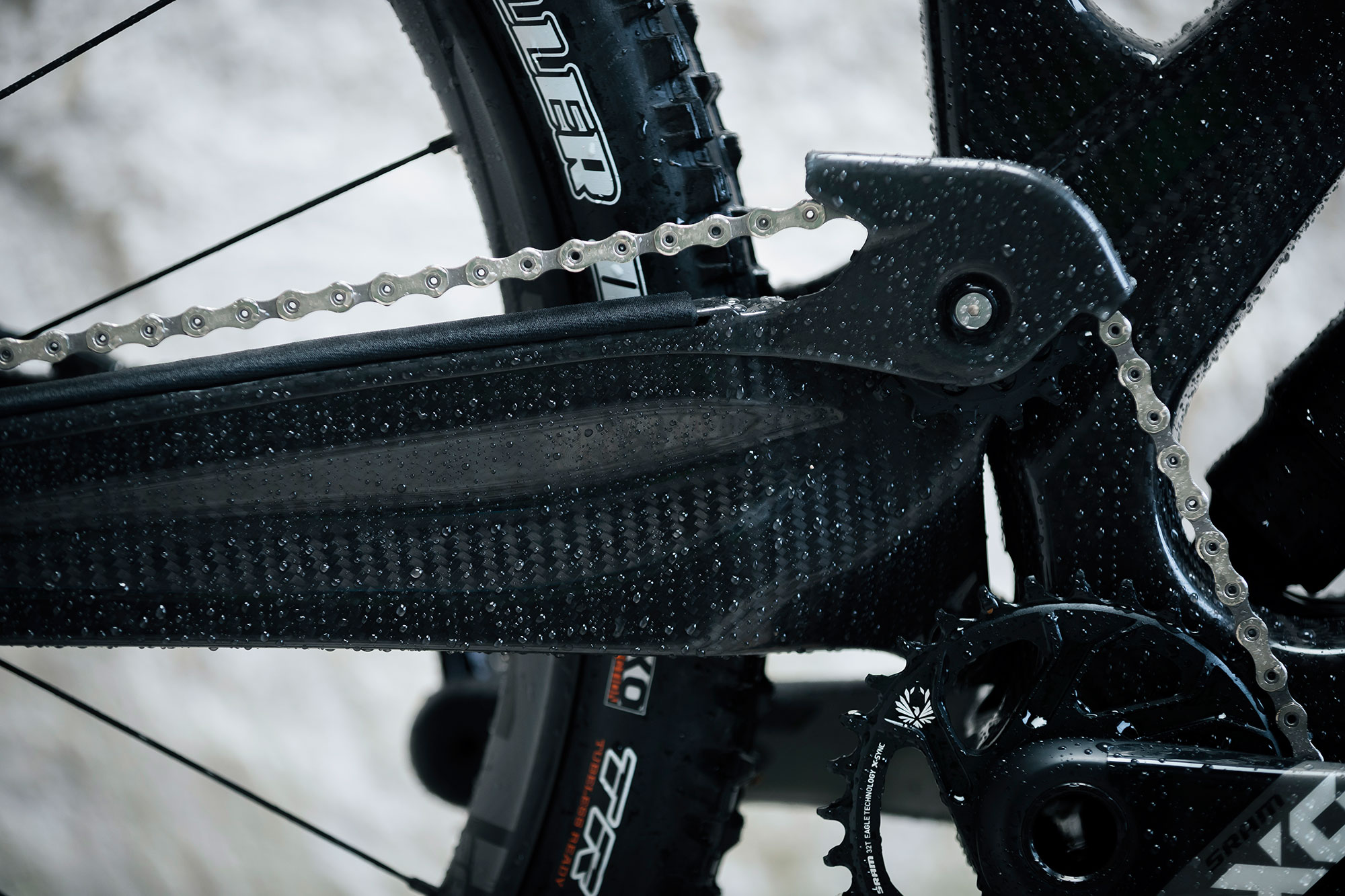Where it really matters – direction changes between corners – the angles on this bike are as good as it gets, the balance point is bang on, with very little weight distribution changes to deal with. There’s exceptional damper/chassis balance to the bike and a low-slung top tube, which allows for acute changes to body position when trying to maintain flow. Barr and his team have already accomplished a huge amount with this bike. We love the balance and pace to this bike rather than the material but realise it’s partly accountable for the performance.