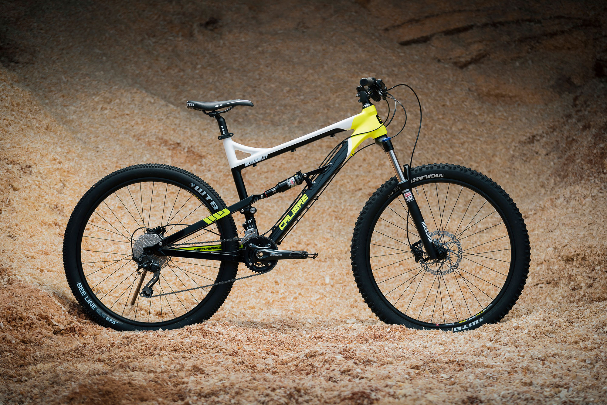 It’s Shimano throughout with the gearing with a full 2×10 speed Deore set-up, with a ‘Shadow Plus’ clutch rear mech. While bikes such as the Marin Hawk Hill have gone for a single ring transmission, Calibre have stuck with a double chainset and this is arguably a choice which buyers at this price would be looking for. Brakes are Shimano Deore (also a pick in the 2017 Dirt 100) and it’s good to see a 180mm rotor up front – you’ll need it on this bike.