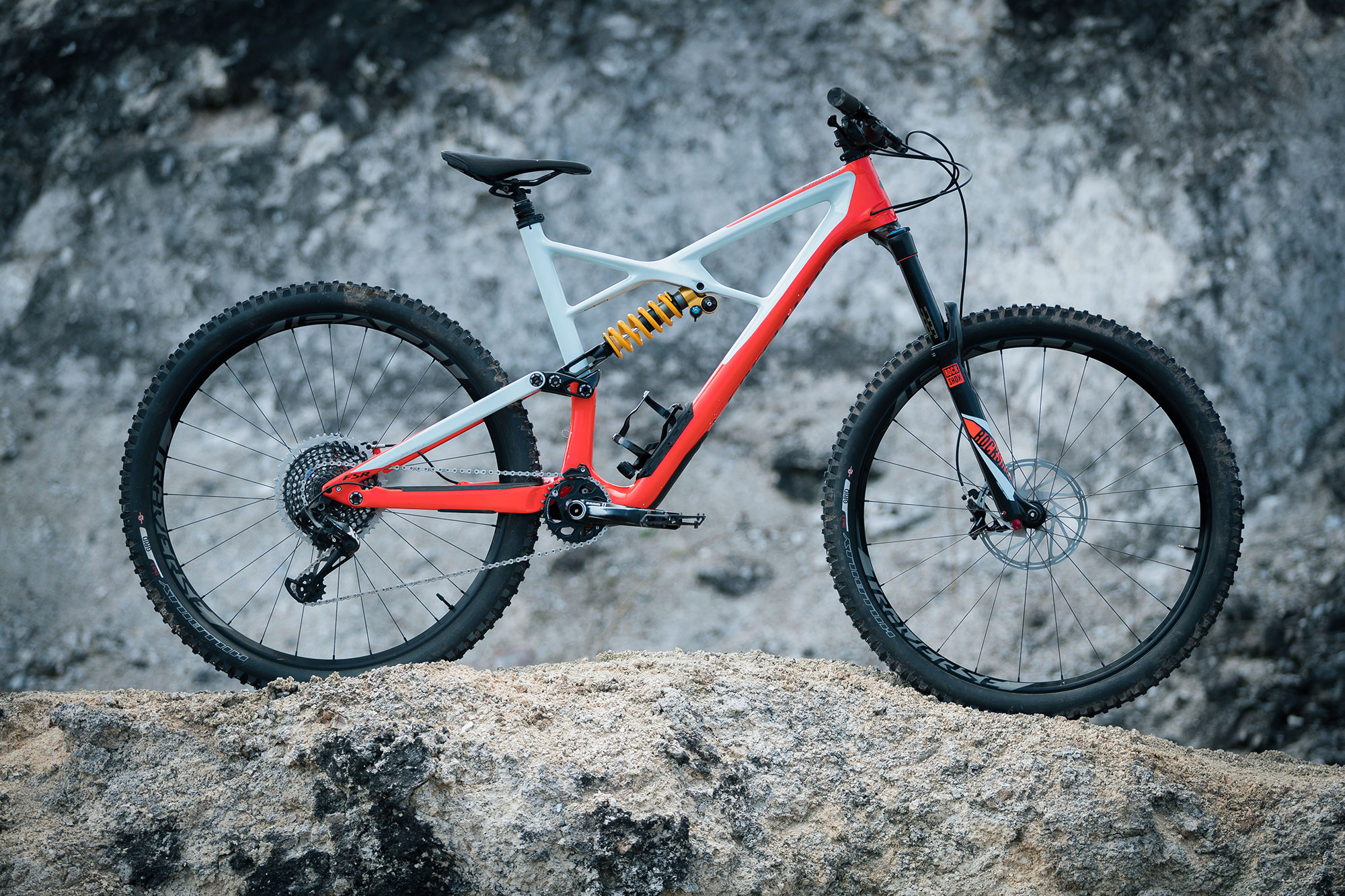 The Jeffsy is bedecked in Fox with a 34 Performance Elite holding things together at the front. It’s a supreme fork but we could just as easily picture this bike with a 150mm 36 to allow it to really plough. The rest of the componentry is just as solid.