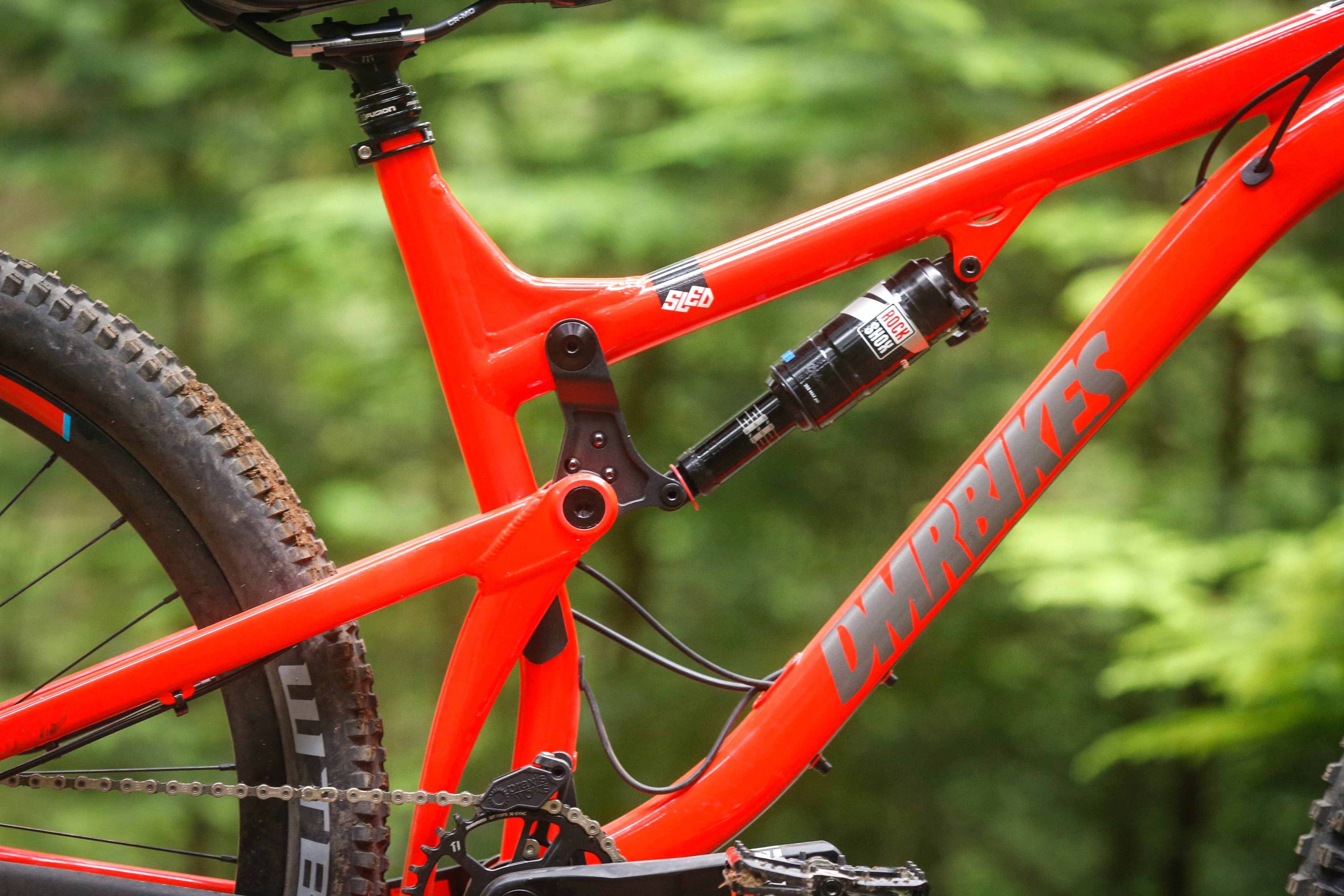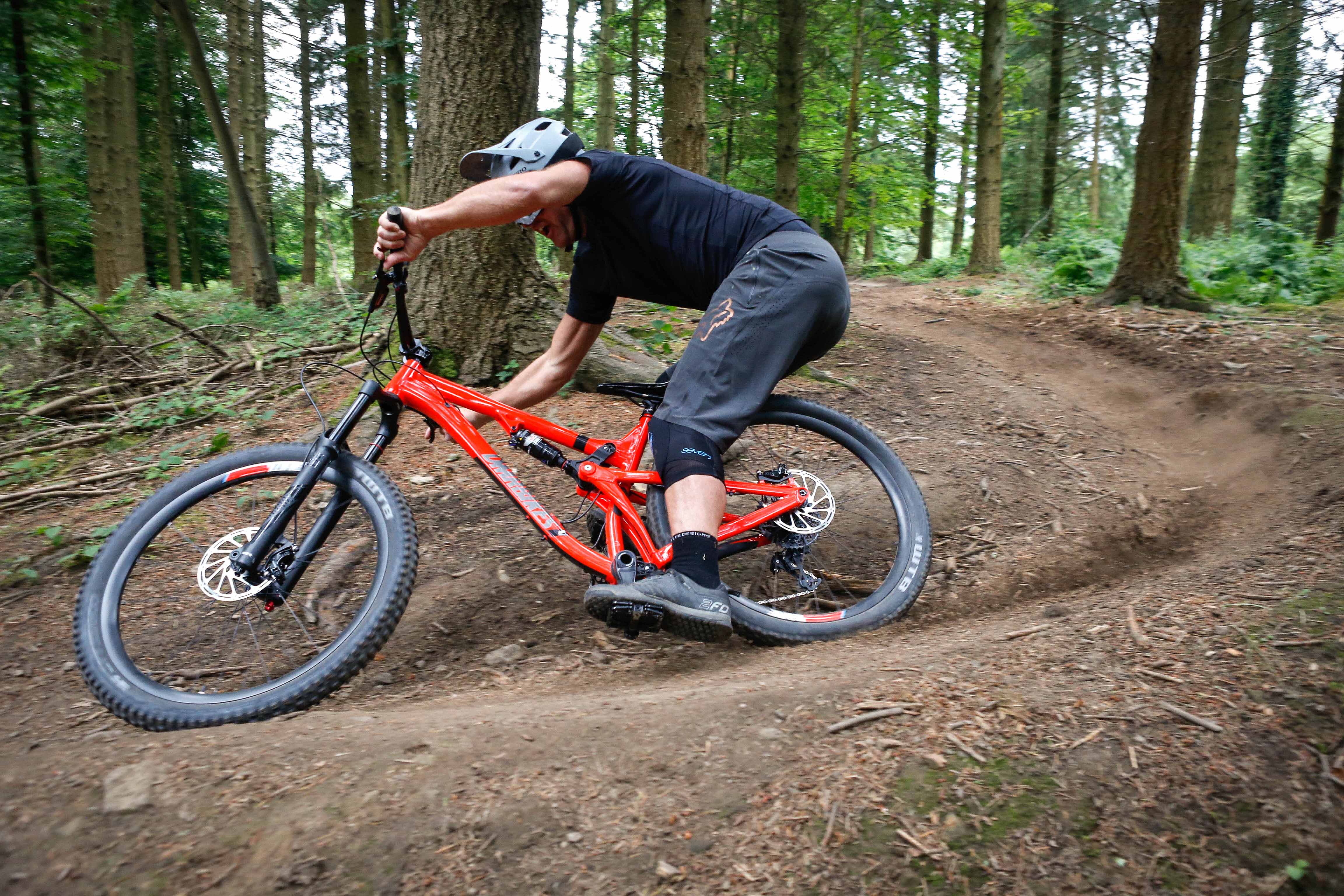 SRAM GX has delivered excellent gearing on pretty much all of the bikes that it has come with, and so too the SRAM Guide R brakes, with 180mm discs giving the bike good bite when needed. This would be our first time out on DMR’s own Axe cranks and Zone wheelset although we’re familiar with the Wingbar and Defy 35 stem and grips which of course are a speciality from this brand. The WTB Convict and Trailboss tyres come in at 2.5″ and 2.4″.