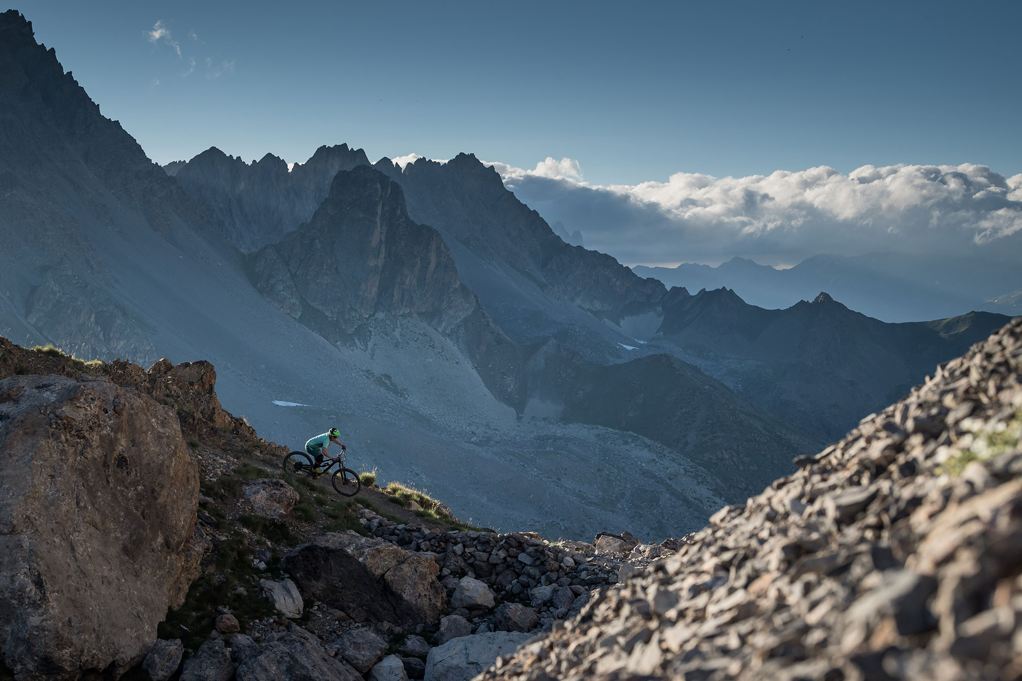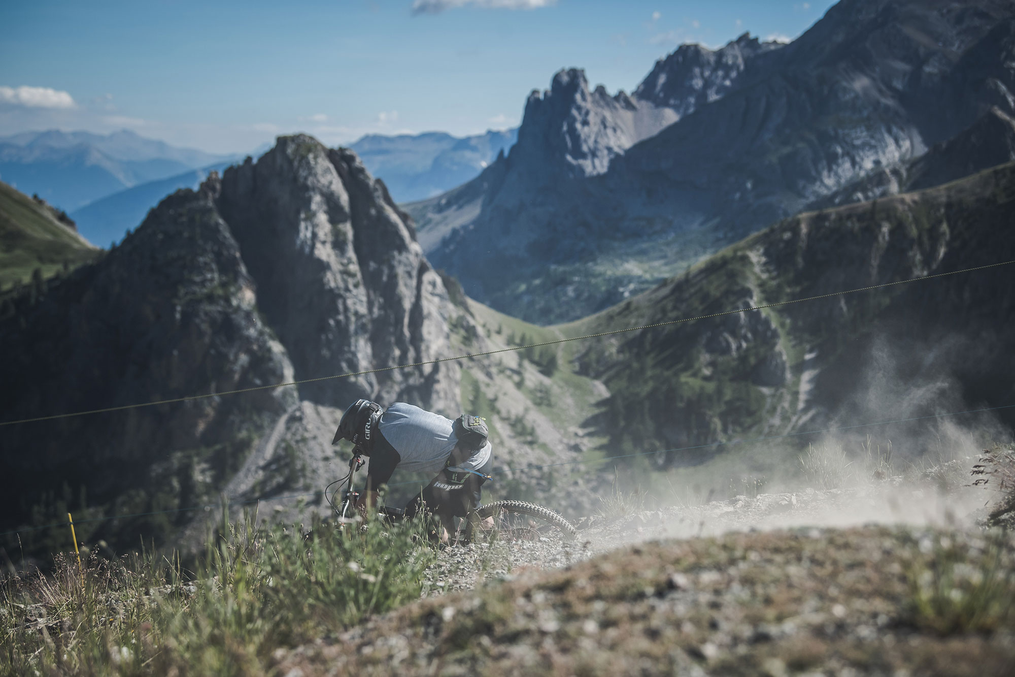 Our second ride was a totally different kettle of fish – a van uplift to a backcountry descent to Briançon that took in one of the steepest tracks I’ve ever half-ridden, half-scrambled. This was designer Guillaume’s typical local riding; technical footpaths and balcony trails that have eyeballs on stalks trying to process all the information to keep safe. In this raw, natural terrain, and the HB160 made good sense. Easy to pick up and turn, tighter here meant more flow in multiple switchbacks and an ability to scythe through twisty tree-lined paths. After a morning rattling rocks and hairpins, Hope’s bike had just kind of slipped into the countryside, meshed into me and got on with it. The narrower rear end really was a thing too; it does slink through tighter gaps and pointy edges better for a not-insignificant advantage.