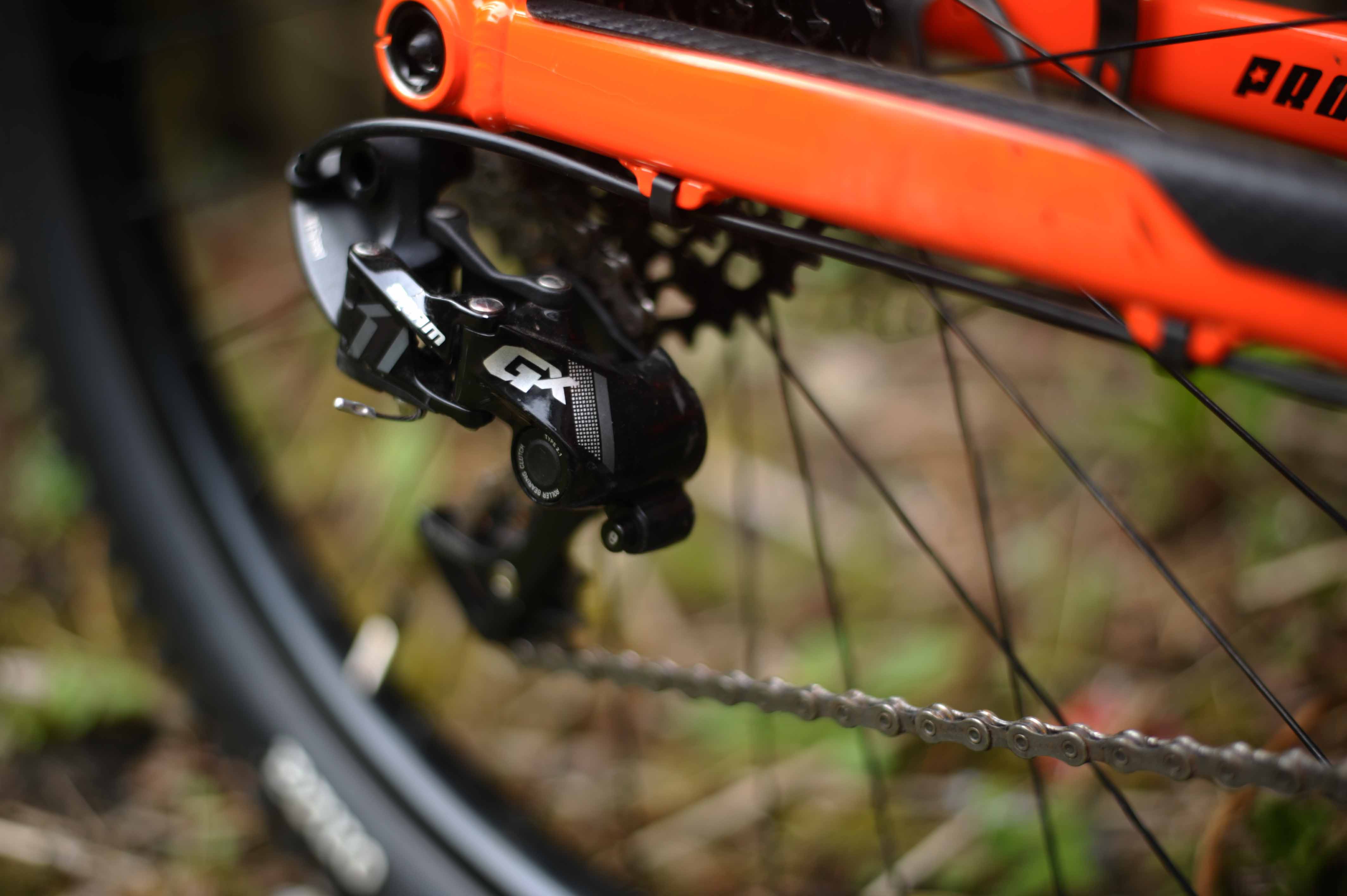 Eight years ago we were moving away from the heavy and often overbuilt ‘Freeride’ bikes that had defined this category of long travel single crown forked bikes. The air sprung Orange Alpine 160 and Commencal Supreme showed promise and the way forward, but many builds were way over 35 pounds and still had the clatter of double chainsets. And there wasn’t a dropper post in sight. With a 170mm fork and 180mm of rear travel the Propain Spindrift, shows a nod towards those bikes. A combination of a coil rear shock (on our test bike), low slung aluminium frame, Fox 36 forks and a purposeful wheelset certainly brings back memories of the capable and much loved Specialized SX Trail – a defining bike in the ‘mini DH’ category of those times. That bike hit scales at 37.5 pounds (17Kg) though, whereas the Spindrift is around six pounds lighter and rolls on 27.5″ wheels. It goes straight up against bikes such as the incredibly capable Radon Swoop and latest generation Orange Alpine 6.