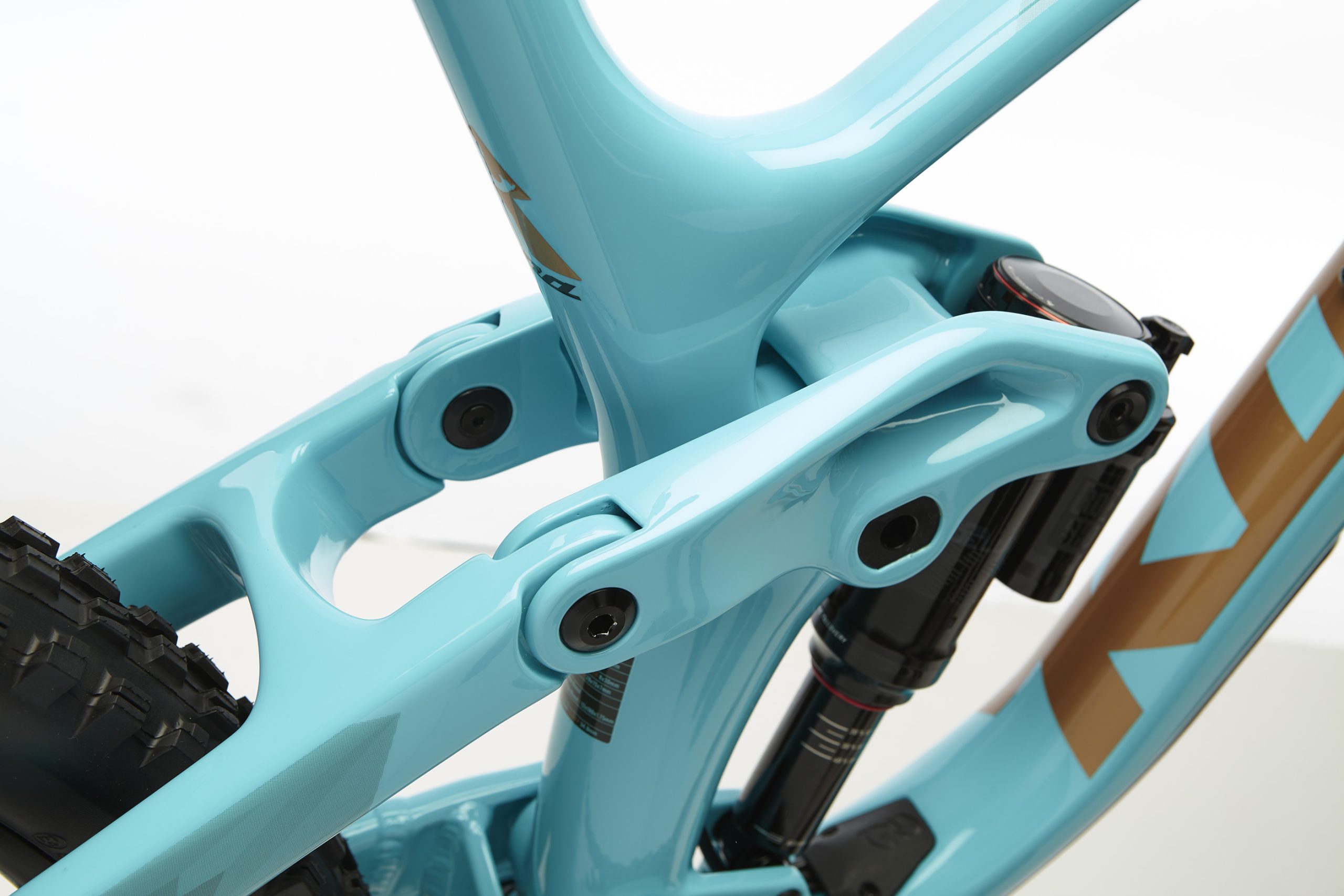 Looking past the carbon construction for a moment let’s take a look at what the new Process 153 design has to offer. As the name suggests, this bike has 153mm of rear travel, is designed around a 160mm fork and rolls on 27.5″/650b wheels. There’s a 66 degree head angle, -10mm bottom bracket drop with the 29” model measuring in at the same height (you do the math). An XL size has a reach of 510mm – all numbers that seem to work in my book and are a promising start. The low standover height remains too.