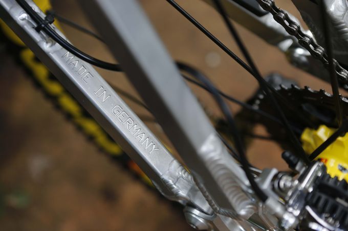 But we know road bikes grow mostly in height rather than length. What’s much more interesting is that the size of many of the road bikes are very close in the bar to bottom bracket dimension as this Nicolai. This is a coincidence rather than one I have gone out to emulate. Whilst the actual reach numbers on say a size 56 Domane (about medium) is quite different to the Ion (495mm plays 377mm) the bottom bracket to handlebar measurement – the position that a rider stands in – is almost identical. In fact from the bottom bracket to where the bar exits the stem is 33” on both the Nicolai and size 56 Domane. The climbing position on the Trek is 37” and from the BB to outside of the 800mm Nicolai bar is 36.5”. These are very close numbers. In other words, whichever way you look at it, as a bicycle the Ion is pretty average.