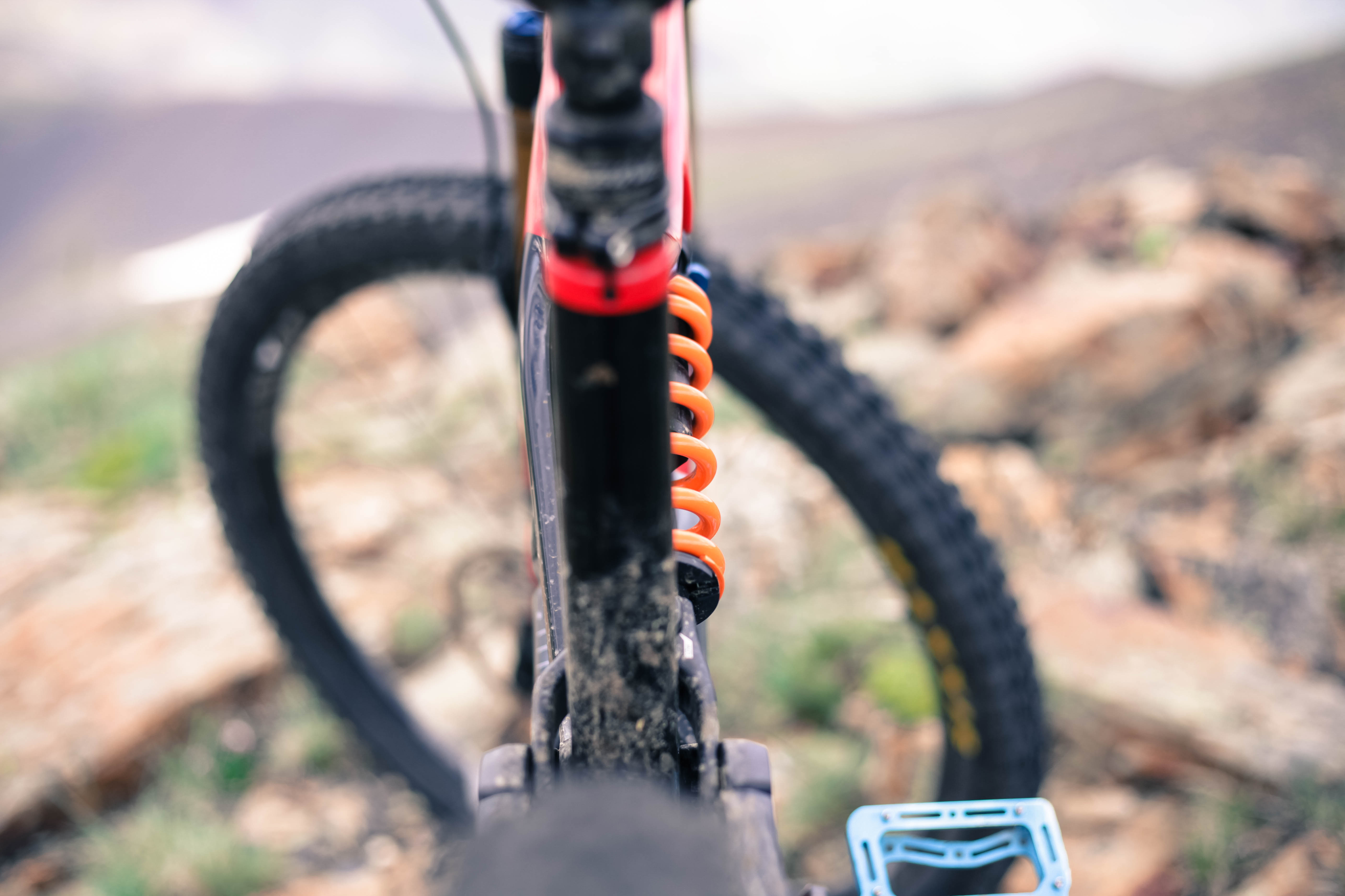 Other important measurements include the bottom bracket which has two heights – 343 mm in low and 336 mm in the even lower setting, this also changes the head angle from 65.5 degrees in low to 65 degrees in lower. It’s jumping off the sheet even by the numbers.