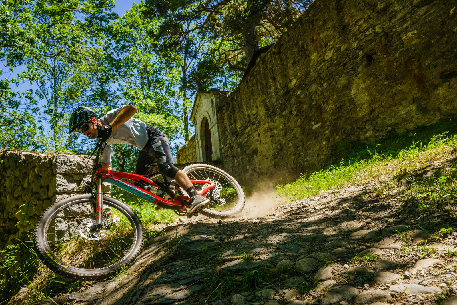 With the Orbea Rallon in size XL for this trip it was very clear that a lot of work has gone into making sure the size was bang up to date. With the 485 mm reach and 800 mm Race Face bars there is a great feel to the cockpit whilst keeping the standover and seat tube length as low as possible. With the ability to fit 170 mm dropper posts there really is no need for these high seat towers so it’s great to see this being put into practice.