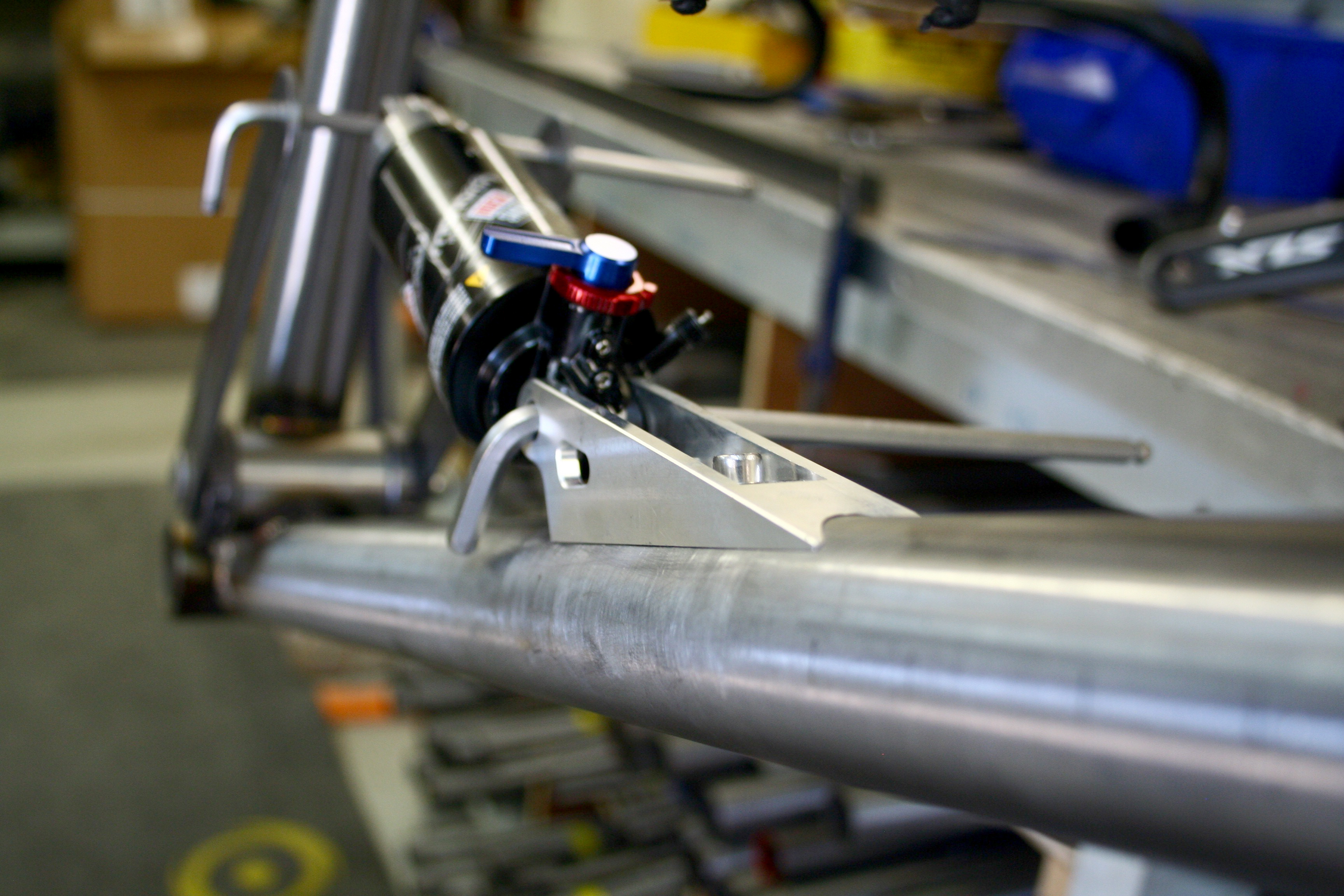 We saw this first mock up the very same day Tim Allen and Jordan (the owners) did and there’s an awful lot to take in. The most obvious feature is the pivot. A simple single-pivot in design but instead of bearings, you’re going to be rocking round on a second bottom bracket.