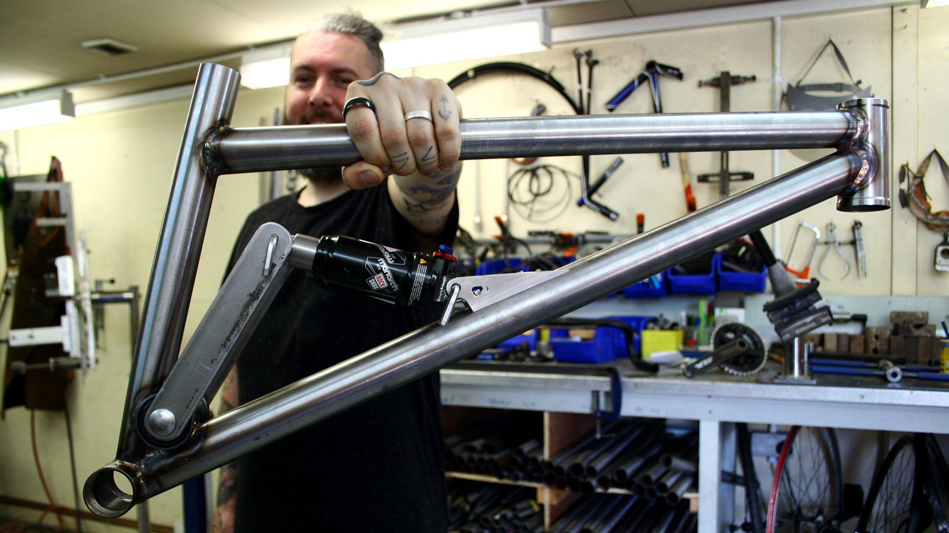Jordan Childs, one of the owners, says: “I believe that the combination of a very long, very slack steel bike, with large wheels and a medium/long travel is the new benchmark for a downhill bike. I feel like having a 200mm downhill bike doesn’t work.”