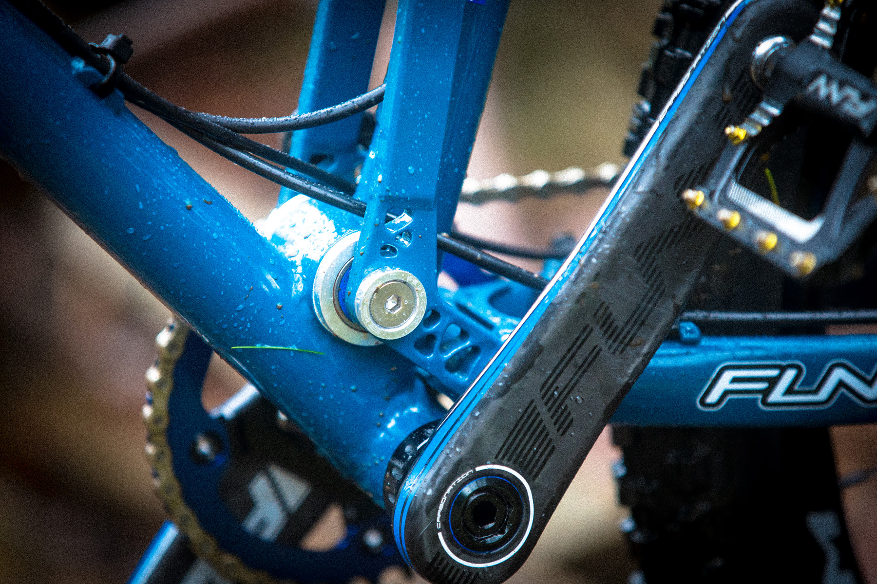 It’s a simple bike with uncomplicated suspension ways. The swingarm pivots in a location very similar to many single pivot bikes – just on the chainline and slightly forward of the bottom bracket.