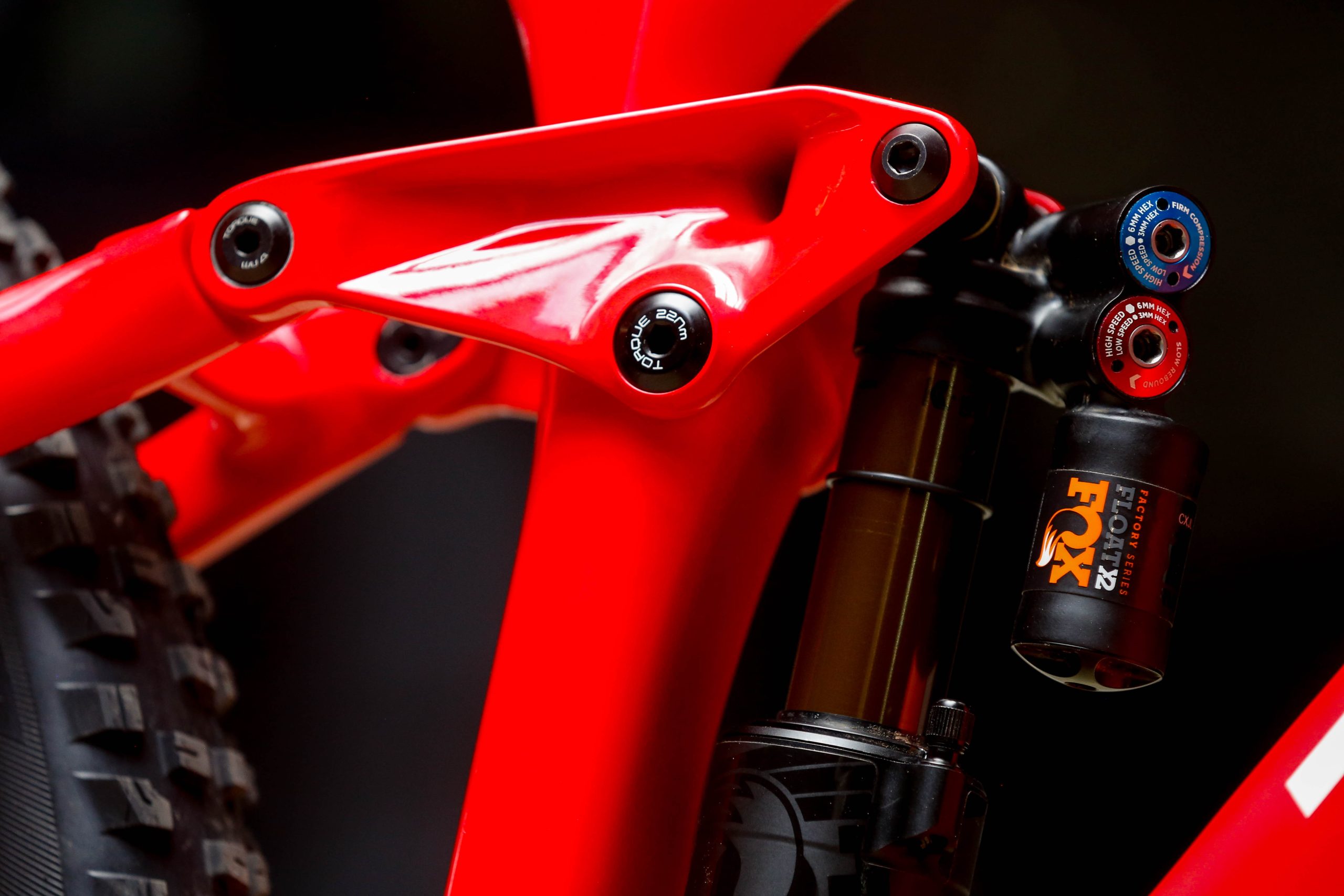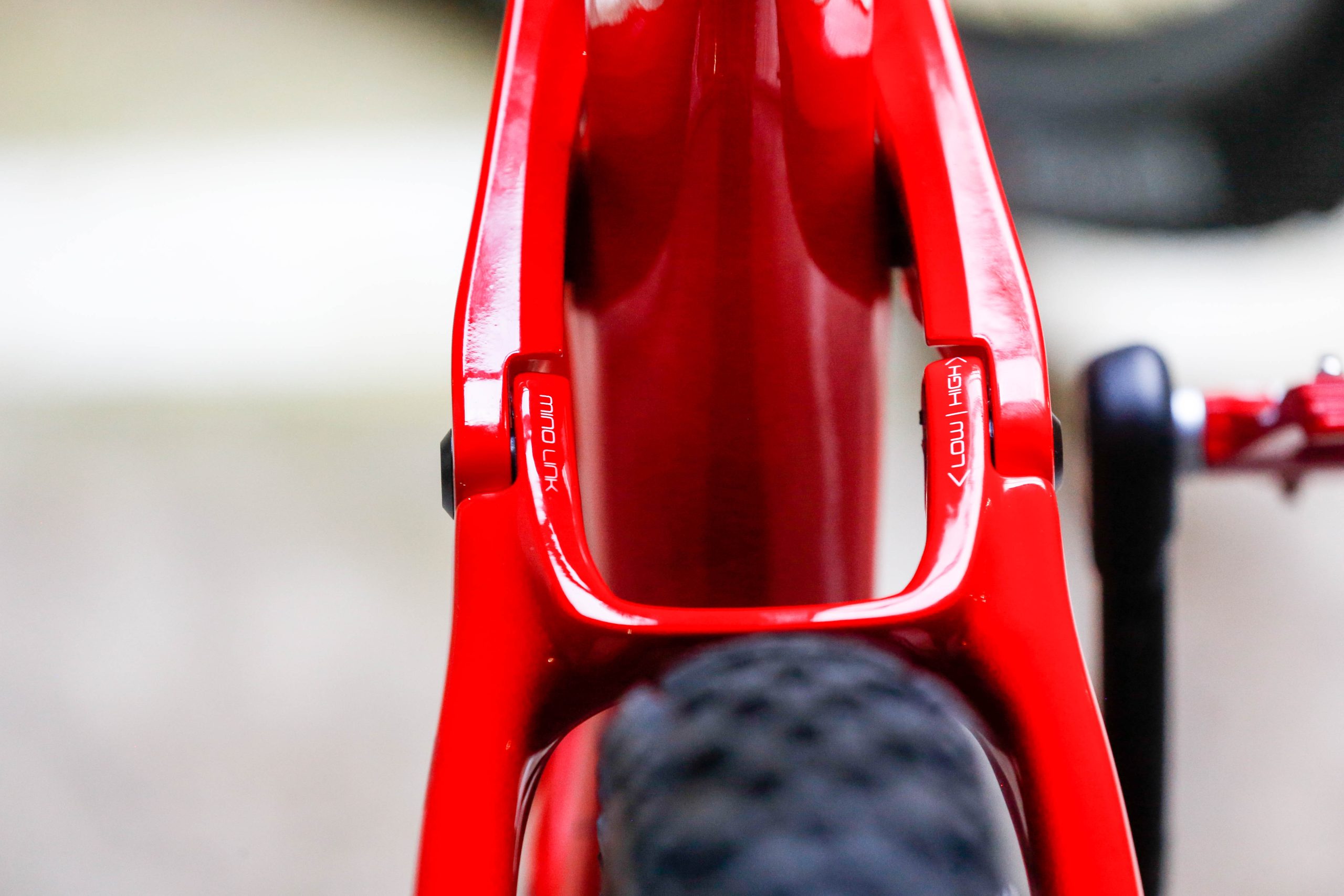 Using a fixed lower shock mount opens up the lower frame area, giving us more opportunity to design stronger, stiffer frames and chainstays. This also gives us more flexibility to accommodate larger, more capable shocks. All of these effects are experienced most dramatically on long travel bikes, like the Slash.