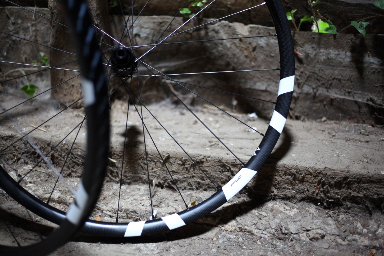 As stated on the website these wheels have been designed to aid with climbing and, at 1495 grams for the pair, the low weight should be noticeable. Although the AM ‘All-Mountain’ wording is used in the name, Fast Forward has focussed the use of these carbon rimmed wheels for bikes with up to 140mm travel forks – putting them realistically in ‘trail bike’ territory rather than ‘enduro’. In comparison a pair of tough and proven aluminium rimmed Stan’s Mk3 Flow 29″ wheels (with a similar width rim) weigh in at 1918g. The new Reserve 27 carbon wheels from Santa Cruz Bicycles (with 27mm internal and 34mm external measurements) are 1755g a pair for the 29″ size with DT350 hubs and sell for £1599 for a pair.