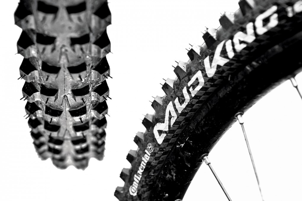 One of the most trail bike specific tyres on test, it is narrow and expensive. However when mounted to a reasonably narrow rim offers an excellent profile. Rolling speed is impressive, the tyre certainly feels slightly harder compound than many of the others. Continental wouldn’t release exact durometer details, saying that, the Black Chilli (compound) gives a false reading. Durometers aside, the edge of the Mud King gives slightly more deflection on roots and rock than the Storm or Mud X but offering slightly more traction off–camber. Really like the feel of this tyre and will be looking to keep it on a test bike for the rest of the winter.
