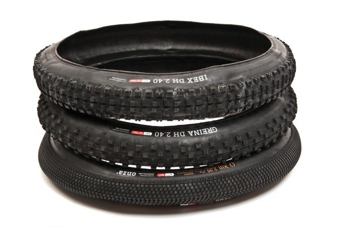 ONZA TYRES 2013If you were riding in the 90’s then Onza tyres will bring back many memories, in particular their Porcupine model. The Onza name then went very quiet before eventually emerging again as a trials bike brand under different ownership, and then a couple of years ago a Swiss company bought the rights to make tyres under the Onza name. Their tyres are now available in the UK and from our first impressions of them on test bikes we’re pleased they’ve now made it over here. They seem to have hit the nail on the head with tread patterns, particularly with the Grenia, which is a superb mixed conditions tyre, and they’ve done a great job with rubber compounds too. Most of their tyres use a dual compound, but it’s the way the rubber rebounds slowly that we really like. There are various different casing and compound options, but be cautious about going for the lighter casings as they are on the thin side. Aside from their trail and DH tyres there’s also the Roger Rinderknecht designed dirt jump tyre which is perhaps best described as an Intense ‘not so’ micro knobby.