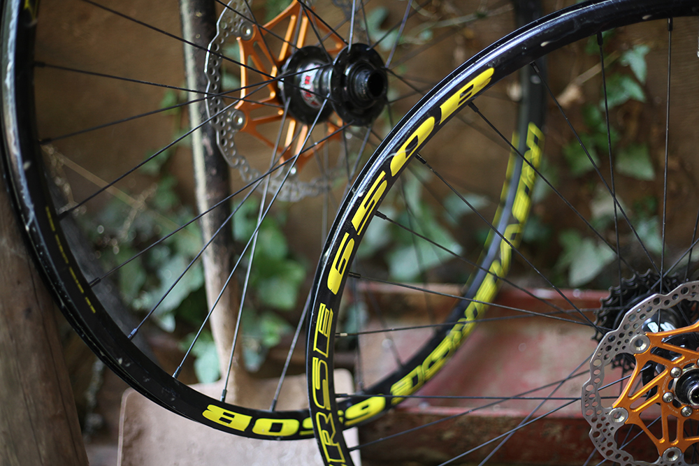 Reverse use 6061-T6 aluminium for the tubeless-ready rims, which are pinned at the join. The internal rim measures 25mm so is perfect when sealing up with Gorilla tape as it comes ready to buy in this width. This also allows for a easy tyre installation when using a tubeless setup where the bead of the tyre sits tight enough on the rim profile that a standard track pump will seat the tyre without a problem. At a listed 560g per rim, these are only a shade in weight over an average trail rim of similar width. A Stan’s NoTubes 27.5″ MK3 Arch rim (26mm internal width) weighs in at 425g, for example. A Stan’s Flow is 480g.