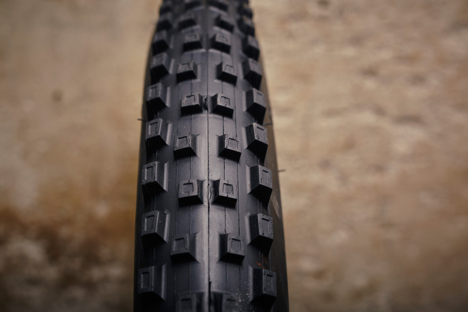 The Hillbilly’s moto-style tread pattern is enough to cut in, yet not too much to tip over on rock or tangle in the roots