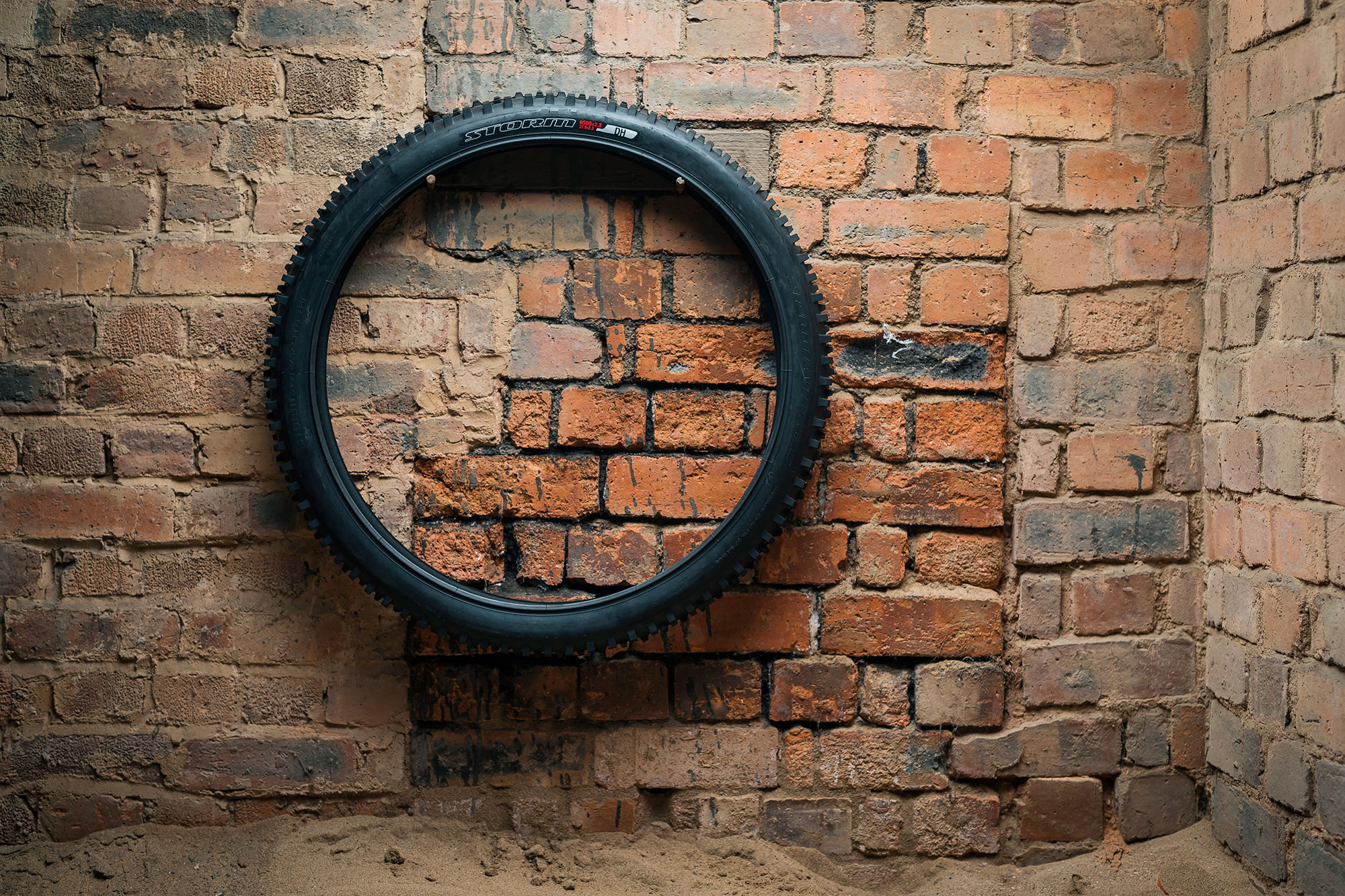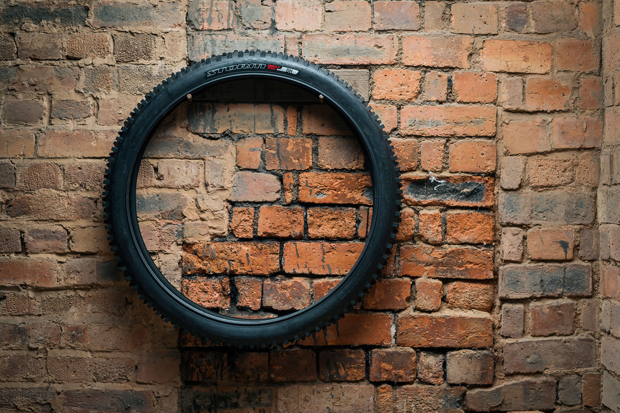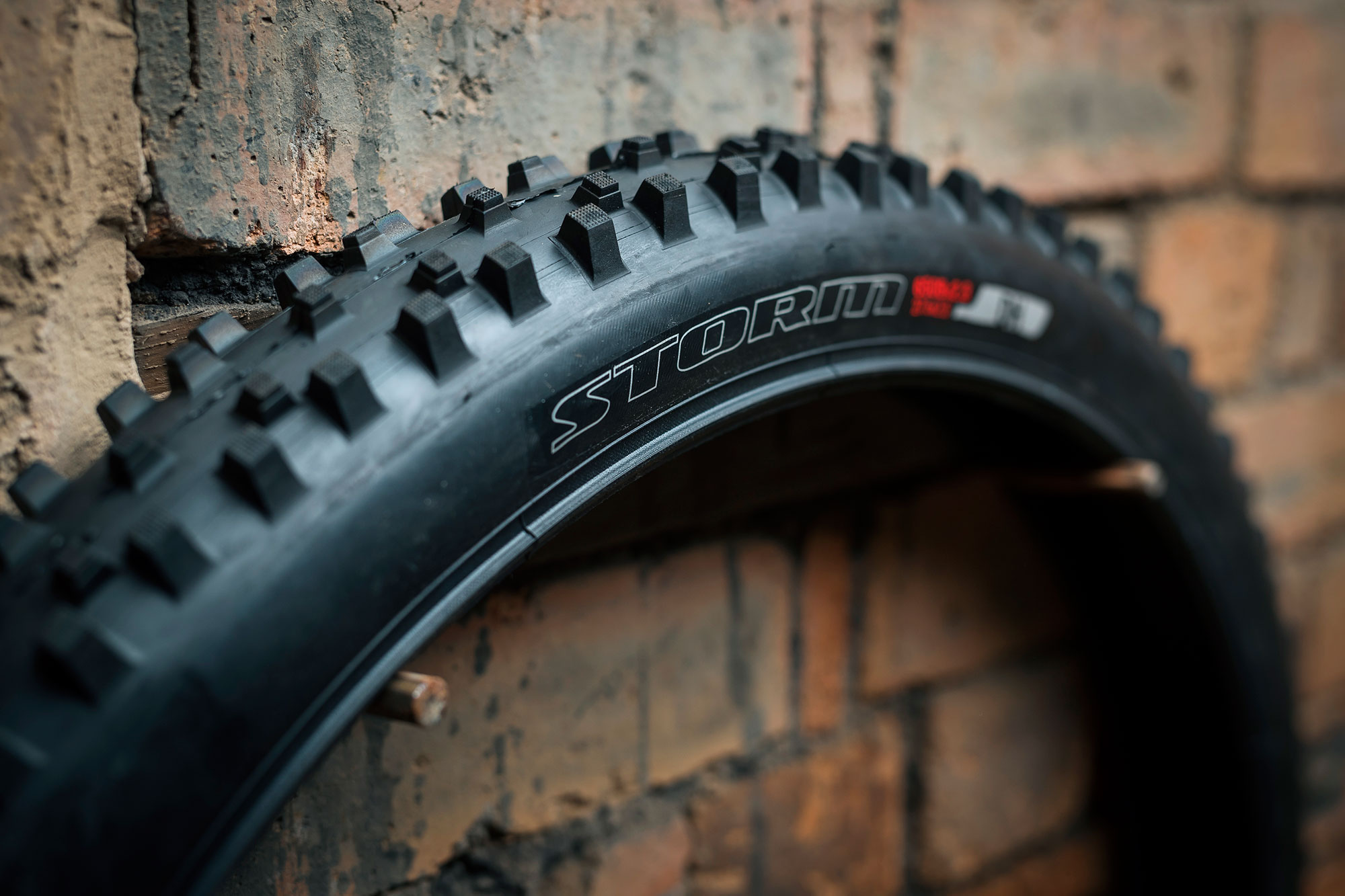 The Storm tyre starts with a dual ply soft rubber compounds: a firmer 70a on the base and a more compliant 42a compound on the top. A reliable 60TPI casing with steel beads and extra Butyl inserts gives plenty of sidewall support (and pinch puncture resistance) allowing the tall tread pattern to grip slippery off camber roots. The tall spiky alternating centre knobs dig deep into both loose soil and greasy mud yet clear quickly and resist clogging. Tall shoulder tread gives excellent grip in tight corners or off-camber sections. Traction is unbeatable and really adds that confidence boost you need on a wet weekend of DH racing or uplifts.