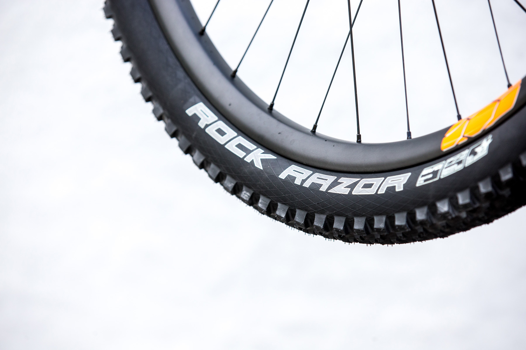 Out the back we can look at maybe a slightly narrower tyre with a lower profile centre tread or one with a closely spaced pattern, resulting in a faster rolling wheel now the ground is dry. Cornering tread is still important and we are now seeing a new breed of reinvented ‘semi-slicks’ giving a good turn of speed but with plenty of traction in the turns but still in high volume sizes up to 2.3/2.4″. If you are racing enduros this season then these may be just the ticket and there’s now a good range to choose from.