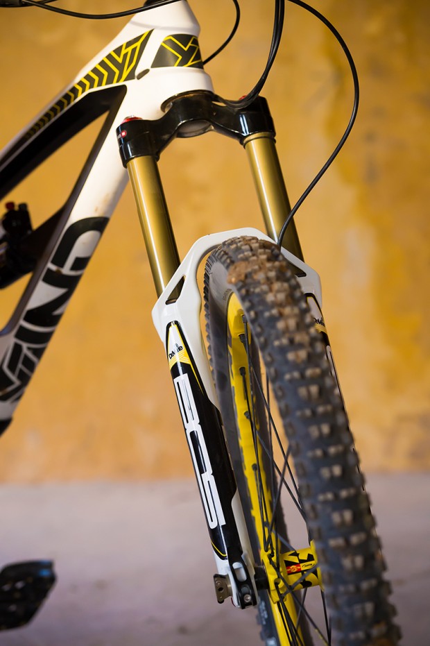 Of course you have every right to love the black, white and yellow of this new bike from YT. Or maybe scratch your head over a specification that reads Sram XO1, BOS Kirk and Deville, Mavic Crossmax, E13, SDG and Renthal. This is a who’s who of product after all, but don’t take too long to marvel at the price tag of a bike thousands of pounds cheaper than many other pretty carbon rivals.