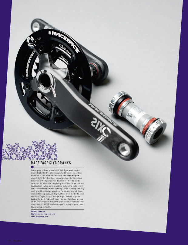 If we ever had doubts about carbon being a suitable material to make cranks out of then these have well and truly proved us wrong. The only small grumble is that we wish Race Face would also sell these without the rings because they must add a fair bit to the price and if like us you run just a single ring all they do is gather dust in the shed.