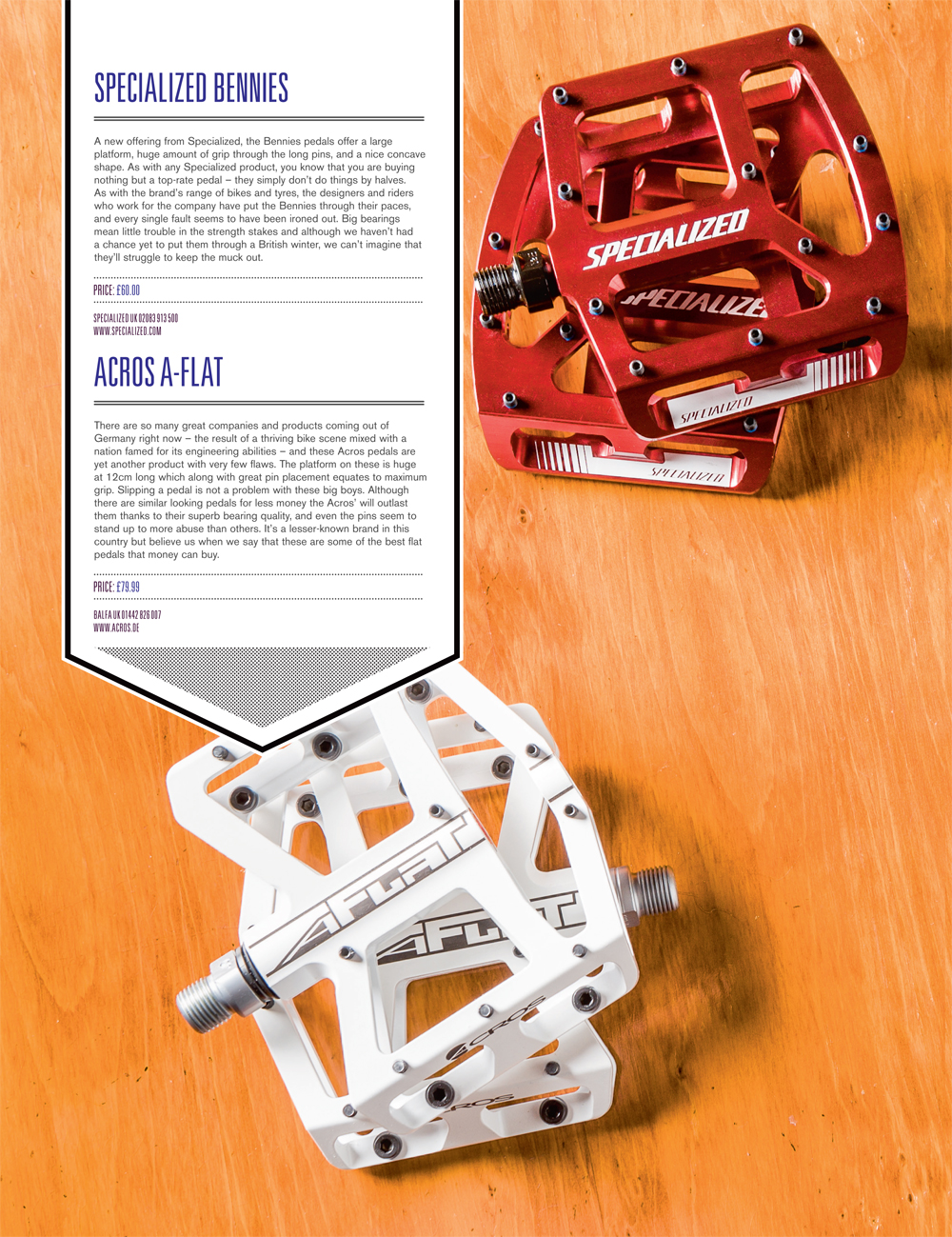 There are so many great companies and products coming out of Germany right now – the result of a thriving bike scene mixed with a nation famed for its engineering abilities – and these Acros pedals are yet another product with very few flaws. The platform on these is huge at 12cm long which along with great pin placement equates to maximum grip. Slipping a pedal is not a problem with these big boys. Although there are similar looking pedals for less money the Acros’ will outlast them thanks to their superb bearing quality, and even the pins seem to stand up to more abuse than others. It’s a lesser-known brand in this country but believe us when we say that these are some of the best flat pedals that money can buy.