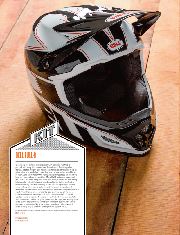 Many BMX vert riders have used the Moto-9 for ramp riding, but there was always a need for something lighter and a helmet that would also bring Bell up to the forefront of mountain biking. The Full-9 does just that with its lightweight carbon shell, its long list of safety features, and the assuring signature of downhill’s current fastest man, Aaron Gwin, to further clarify the helmet’s worth. Then there’s a host of slightly less practical but all-the-more interesting features including: built in (but removable) Go Pro and Contour camera mounts, ‘Soundtrax’ – Bell’s built in speaker pockets with designated cable routing for those who like to groove as they move, and a clever and functional ‘Overbrow’ ventilation system.