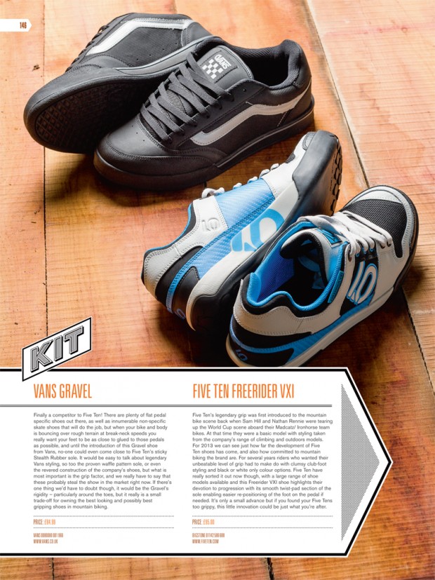 Five Ten’s legendary grip was first introduced to the mountain bike scene back when Sam Hill and Nathan Rennie were tearing up the World Cup scene aboard their Madcatz/ Ironhorse team bikes. At that time they were a basic model with styling taken from the company’s range of climbing and outdoors models. For 2013 we can see just how far the development of Five Ten shoes has come, and also how committed to mountain biking the brand are.