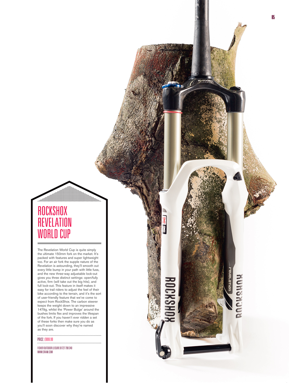 The Revelation World Cup is quite simply the ultimate 150mm fork on the market. It’s packed with features and super lightweight too. For an air fork the supple nature of the Revelation is astounding, they’ll smooth out every little bump in your path with little fuss, and the new three-way adjustable lock-out gives you three distinct settings: open/fully active, firm (will take out the big hits), and full lock-out. This feature in itself makes it easy for trail riders to adjust the feel of their bike according to the terrain, and it’s the sort of user-friendly feature that we’ve come to expect from RockShox.