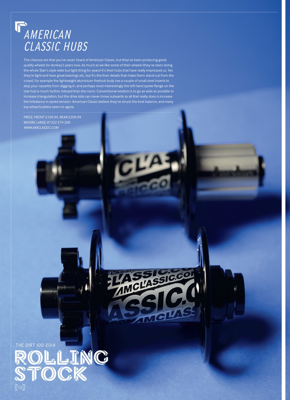 The chances are that you’ve never heard of American Classic, but they’ve been producing great quality wheels for donkey’s years now. As much as we like some of their wheels (they’ve been doing the whole Stan’s style wide but light thing for years) it’s their hubs that have really impressed us. Yes they’re light and have great bearings etc, but it’s the finer details that make them stand out from the crowd. For example the lightweight aluminium freehub body has a couple of small steel inserts to stop your cassette from digging in, and perhaps most interestingly the left hand spoke flange on the rear hub is much further inboard than the norm. Conventional wisdom is to go as wide as possible to increase triangulation, but the drive side can never move outwards so all that really does is increase the imbalance in spoke tension. American Classic believe they’ve struck the best balance, and many top wheel builders seem to agree.