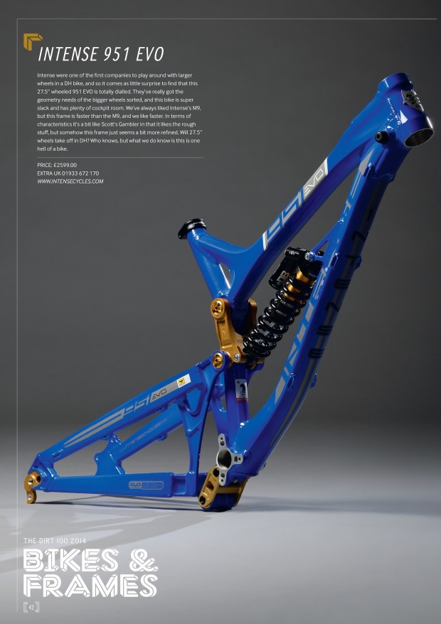 We at Dirt have always had a soft spot for Intense bikes – in fact the same could probably be said for most mountain bikers. The 951 EVO squeezes its 27.5” wheels into the 2014 Dirt 100, find out why: