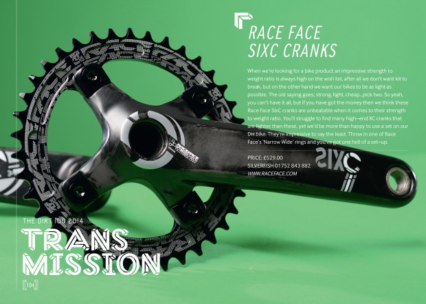 When we’re looking for a bike product an impressive strength to weight ratio is always high on the wish list, after all we don’t want kit to break, but on the other hand we want our bikes to be as light as possible. The old saying goes; strong, light, cheap…pick two. So yeah, you can’t have it all, but if you have got the money then we think these Race Face SixC cranks are unbeatable when it comes to their strength to weight ratio. You’ll struggle to find many high–end XC cranks that are lighter than these, yet we’d be more than happy to use a set on our DH bike. They’re impressive to say the least. Throw in one of Race Face’s ‘Narrow Wide’ rings and you’ve got one hell of a set–up.