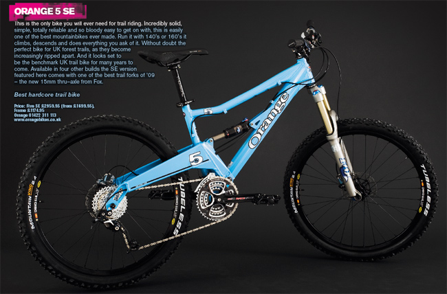 Available in four other builds the SE version featured here comes with one of the best trail forks of ‘09 – the new 15mm thru–axle from Fox.