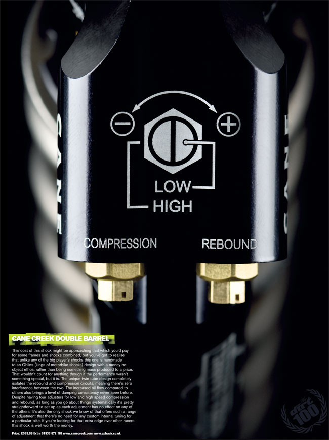 This cost of this shock might be approaching that which you’d pay for some frames and shocks combined, but you’ve got to realise that unlike any of the big player’s shocks this one is handmade to an Ohlins (kings of motorbike shocks) design with a money no object ethos, rather than being something mass produced to a price. That wouldn’t count for anything though if the performance wasn’t something special, but it is. The unique twin tube design completely isolates the rebound and compression circuits, meaning there’s zero interference between the two. The increased oil flow compared to others also brings a level of damping consistency never seen before. Despite having four adjusters for low and high speed compression and rebound, as long as you go about things systematically it’s pretty straightforward to set up as each adjustment has no effect on any of the others. It’s also the only shock we know of that offers such a range of adjustment that there’s no need for any custom internal tuning for a particular bike. If you’re looking for that extra edge over other racers this shock is well worth the money.