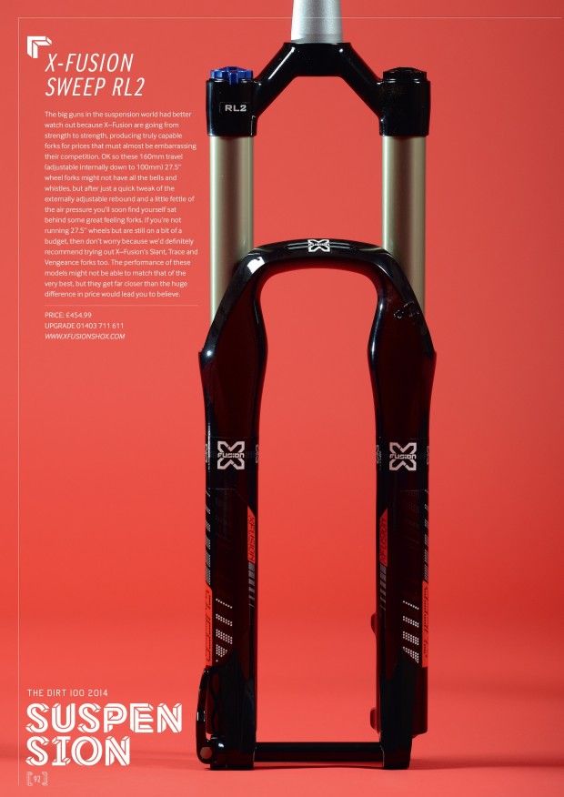 The big guns in the suspension world had better watch out because X–Fusion are going from strength to strength, producing truly capable forks for prices that must almost be embarrassing their competition. OK so these 160mm travel (adjustable internally down to 100mm) 27.5” wheel forks might not have all the bells and whistles, but after just a quick tweak of the externally adjustable rebound and a little fettle of the air pressure you’ll soon find yourself sat behind some great feeling forks. If you’re not running 27.5” wheels but are still on a bit of a budget, then don’t worry because we’d definitely recommend trying out X–Fusion’s Slant, Trace and Vengeance forks too. The performance of these models might not be able to match that of the very best, but they get far closer than the huge difference in price would lead you to believe.