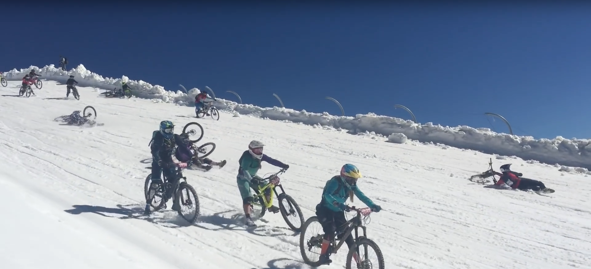 Megavalanche is a mass-start downhill marathon-style event mixing gravity-assisted excitement with enduro levels of fitness. It was first staged in 1995, starting from the French Alps town of Alpe D’Huez on the snowy summit of the Pic Blanc and descending 2,000 metres to the lush meadows of the valley bottom at Allemont.