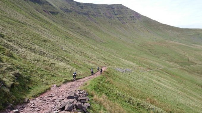 Sarn Helen – Red – 33.8km – This trail starts off on country lanes before joining the Sarn Helen road. It then brings you down a tarmac descent and runs along the Senni Valley before climbing 150m again. The final stretch is along Heol Cefn Y Gaer, passing the site of one of the many hill forts in the Brecon Beacons National Park.