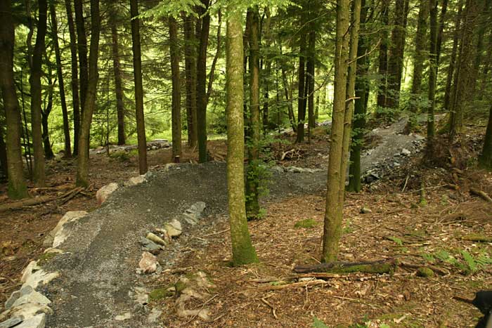 Temtiwr – Red – 8.7km, 0.5- 1 hour – Temtiwr includes five sections of great singletrack, from extremely technical rock pitching, to fast flowing swooping curves through the trees with one main climb up from the river Gain. A short route to get an idea of what the longer trails in Coed-y-Brenin have to offer.