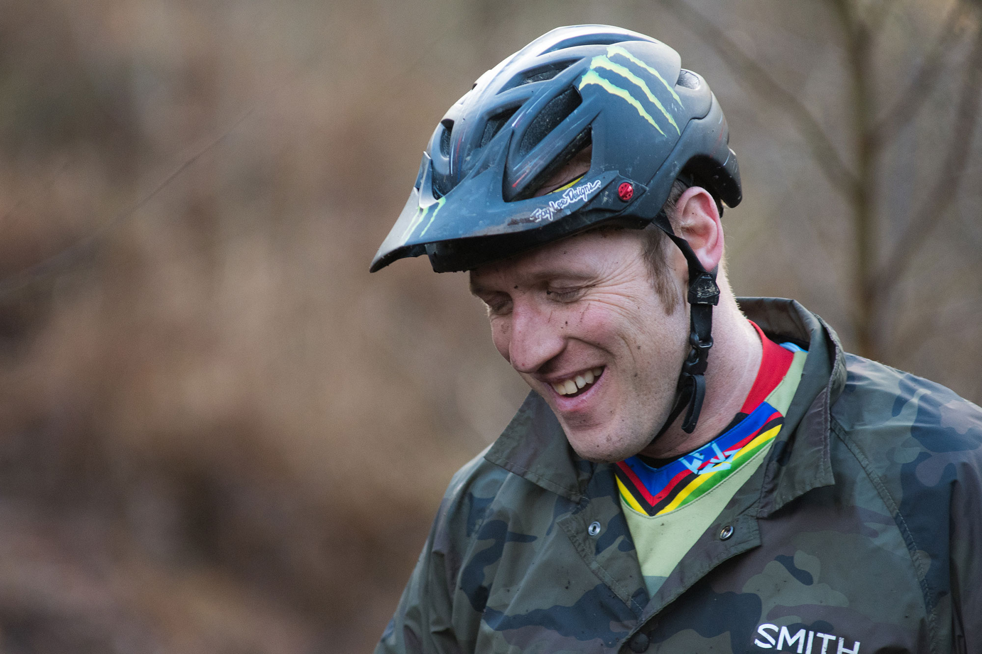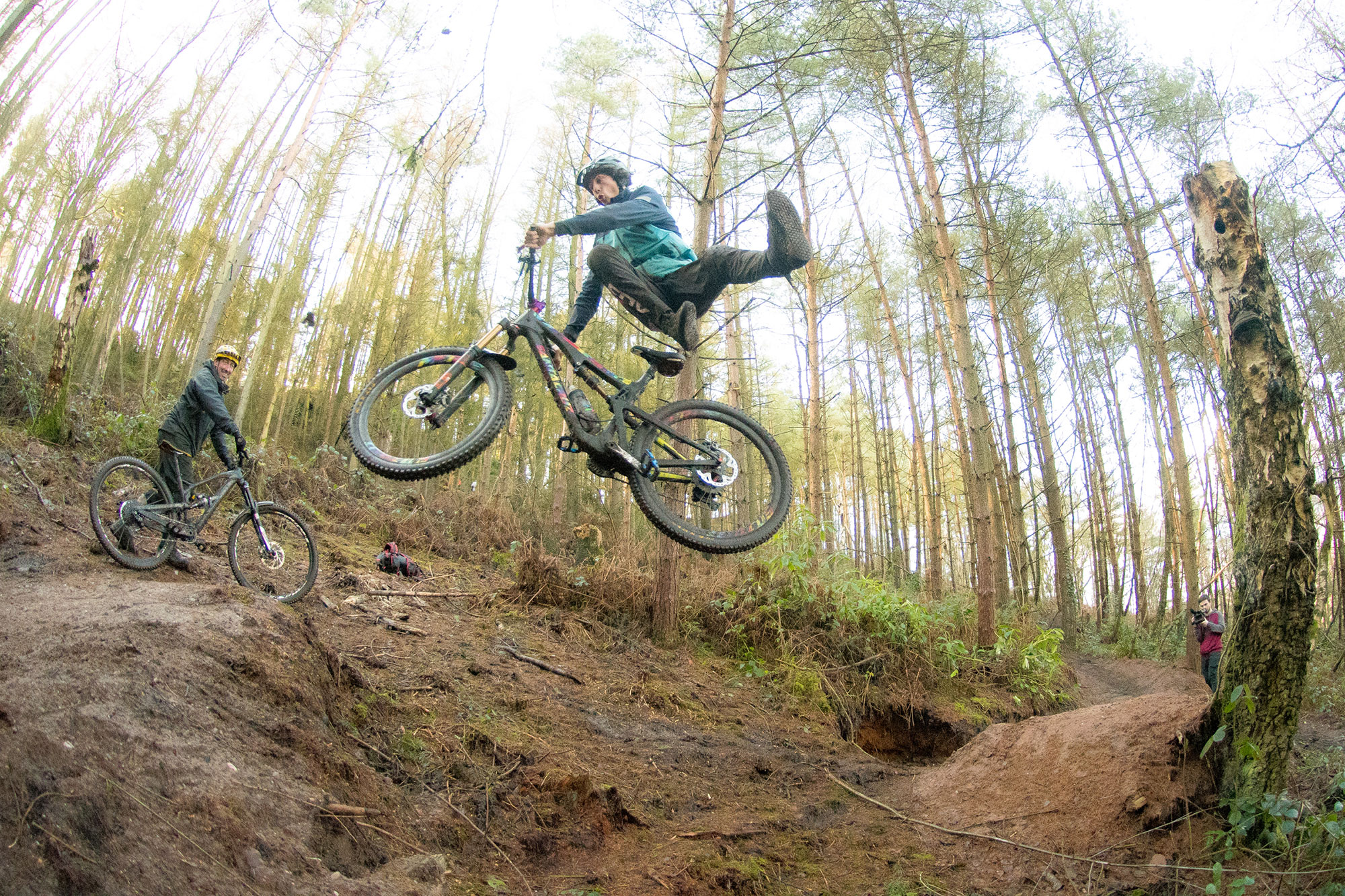 I was messing around, I just rode flat pedals and played round. I had a crash actually – quite a few, it was slick. All the boys were struggling because it was that slippy. It was just a good day out in the woods filming with the boys