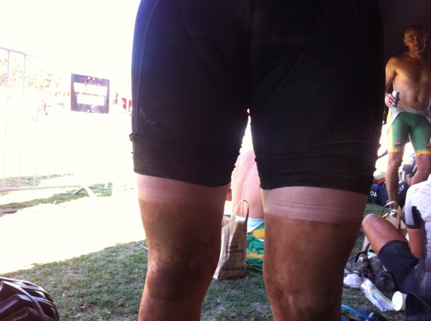 Arms: Not only will eight days in the saddle at calorie deficit shrink your arms, you’re bound to get little strips of sunburn where your sleeves move around throughout the day. This creates an interesting ring effect. Rider number wrist-bands are also a potential hazard for interesting tanning.
