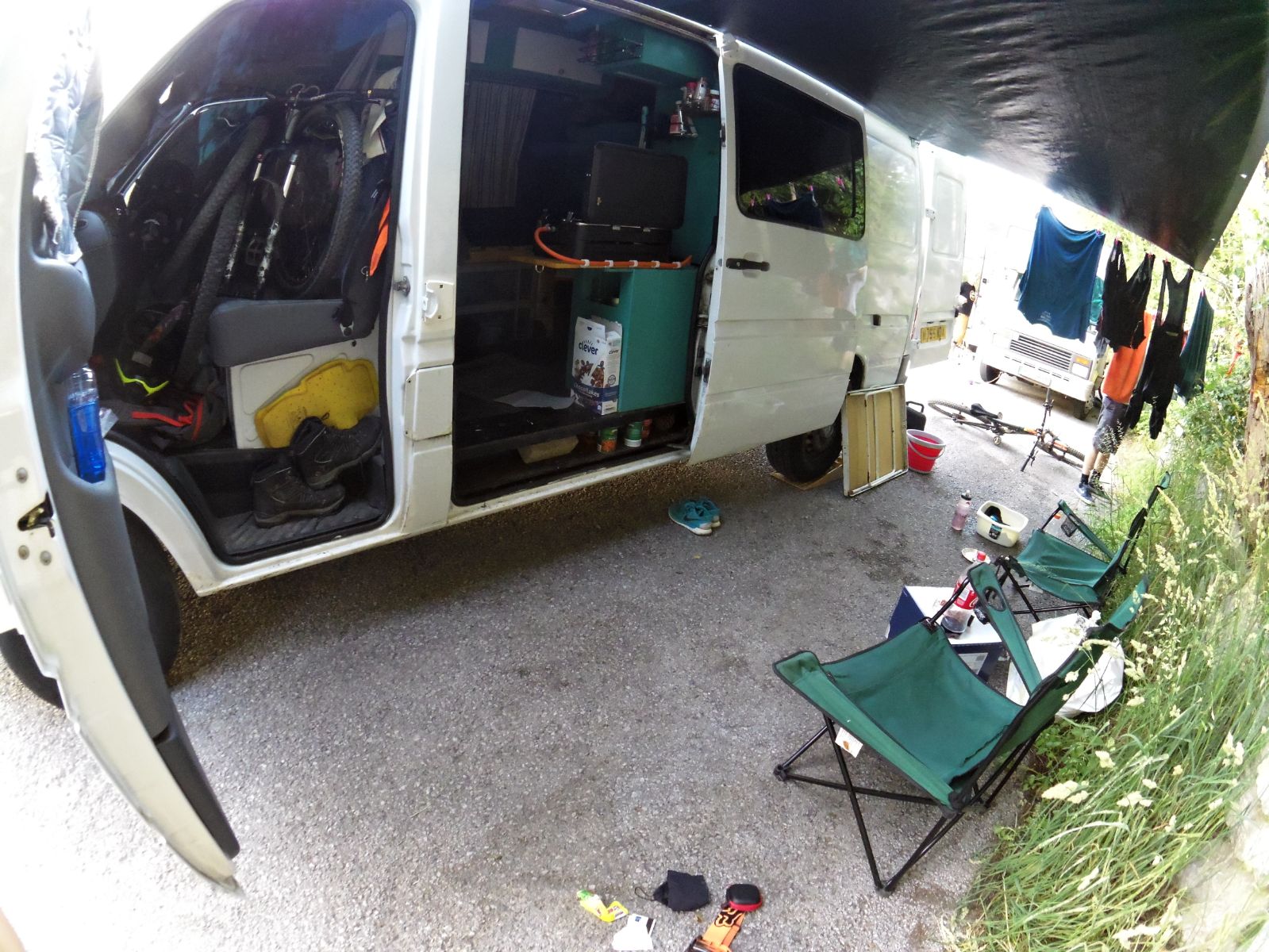 Mega week started with a full strip down and rebuild of the steeds so they were ready to tackle everything that was about to be thrown at them. Practice week at the Mega is always a laugh; drinking, riding, skinny dipping in the local lakes and filling your lungs up with endless amounts of dust from roosting every turn in sight. This is the best way to do it as it makes you forget you are about to launch yourself down a glacier on the weekend.