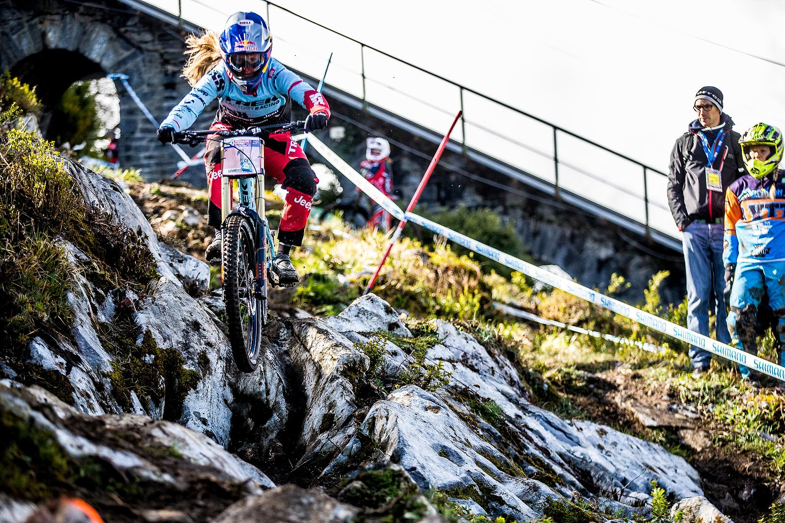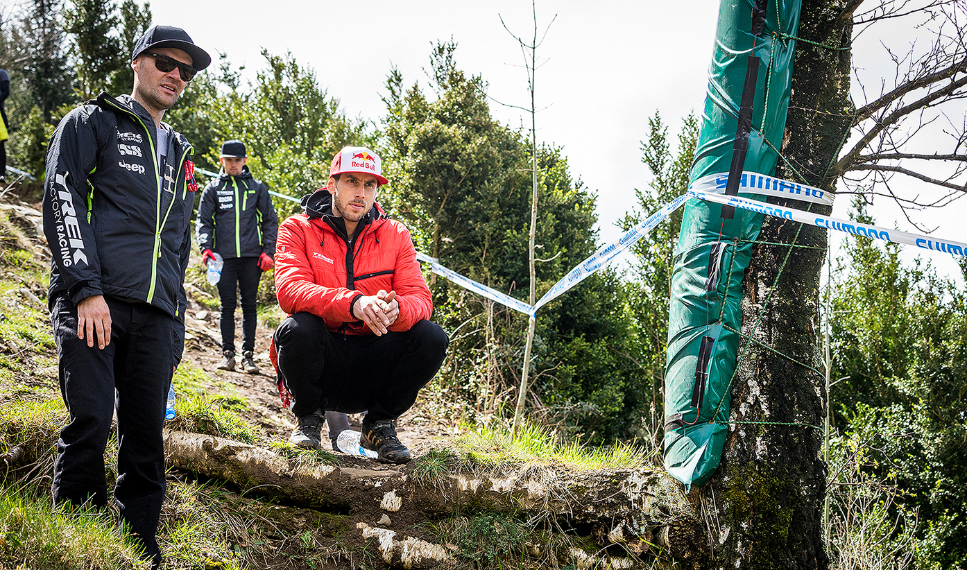 Steve Peat was in the B practice and was one rider whose silhouette really stood out; his trademark large stature hunched over with his elbows up flying along. It might not be an obvious point to those watching via an internet router, but B practice would have been a real hindrance to him and Marc ‘Slugger’ Beaumont, as the freight train of tops guys to confirm lines and pace through a section just isn’t there. Watching less experienced riders struggle through a technical section doesn’t help with confidence or affirmation, and I think this would have contributed to Marc Beaumont not qualifying this weekend.